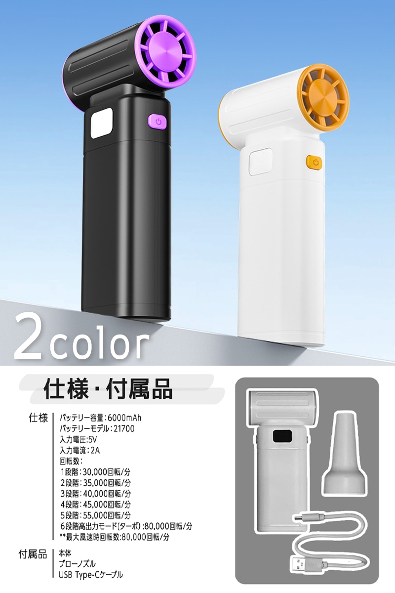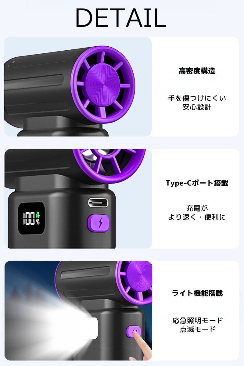 - 超強風 「充電式小型ブロワー(ブラック)」 掃除・ハンディファン・エアダスター・ドライヤー・空気入れ