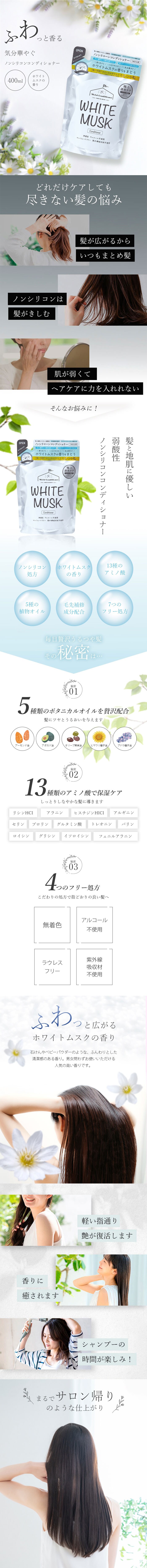 【400ml×2個組】ホワイトムスク コンディショナー詰替タイプ | ★香り広がる、しっとりモイスト、気分華やくコンディショナー