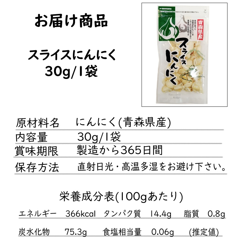 - 【5袋】青森県産にんにくスライス (30g×5袋)無着色・無香料