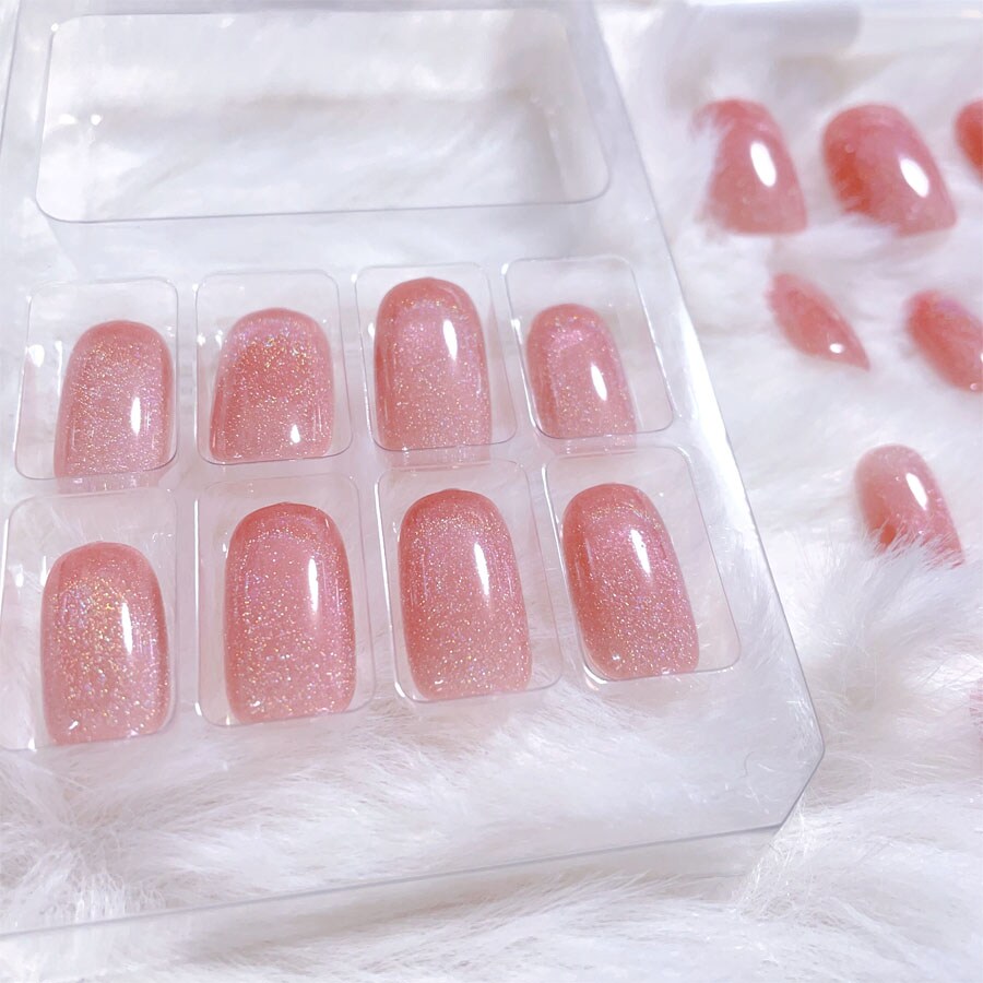 【24枚入】ネイルチップ ピンク×ラメ | シンプルでかわいいネイルチップ
