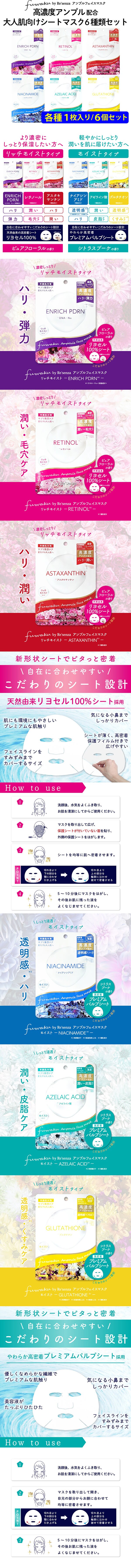 【6種計30個セット】fuwaku by Re'senza アンプルフェイスマスク | 変化する大人肌へサプリ発想ケア 高濃度アンプル配合贅沢シートマスク