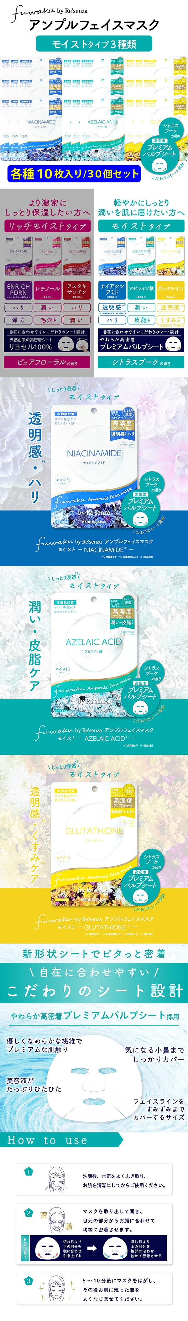 【モイスト30個セット】fuwaku by Re'senza アンプルフェイスマスク 各10枚入 | 変化する大人肌へサプリ発想ケア 高濃度アンプル配合贅沢シートマスク