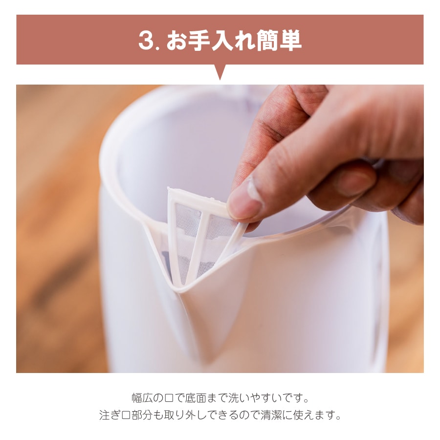 注ぎ口のフィルターも取り外しできるので、清潔にご使用頂けます。