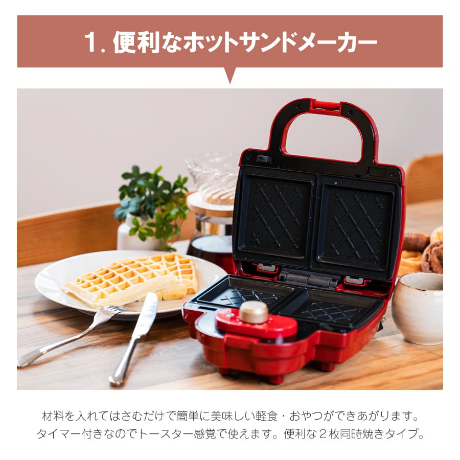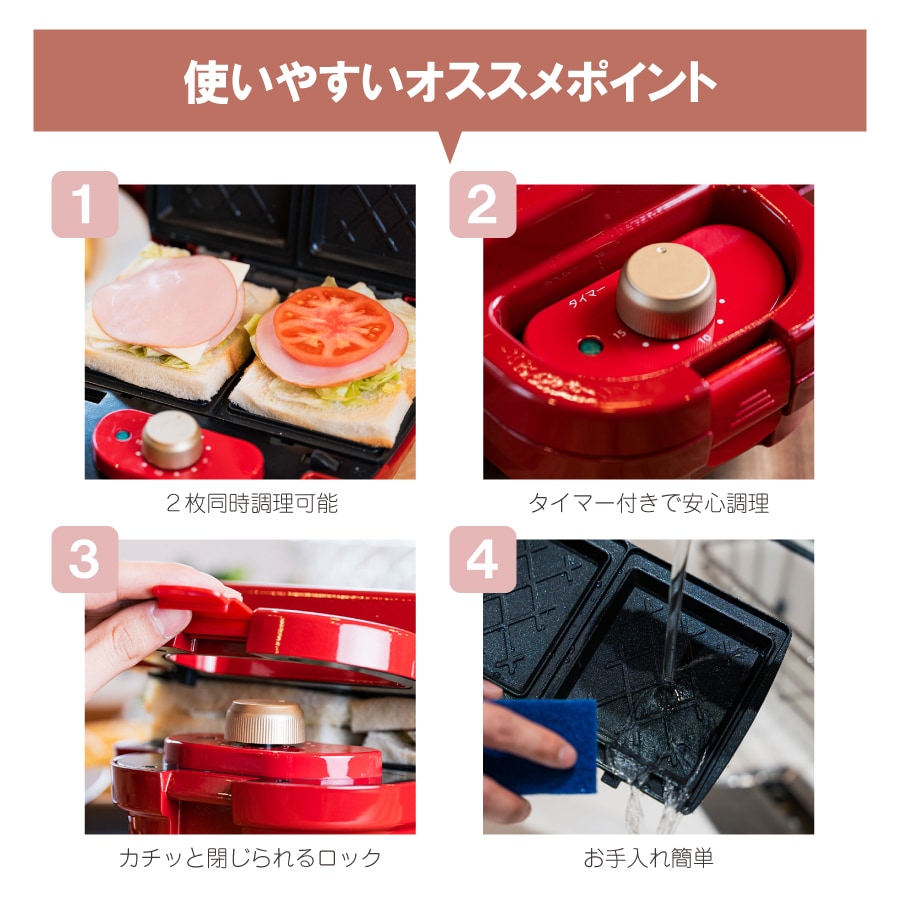 【ブラック】タイマー付きホットサンドメーカー | 2枚同時に焼けるのが嬉しいホットサンドメーカー