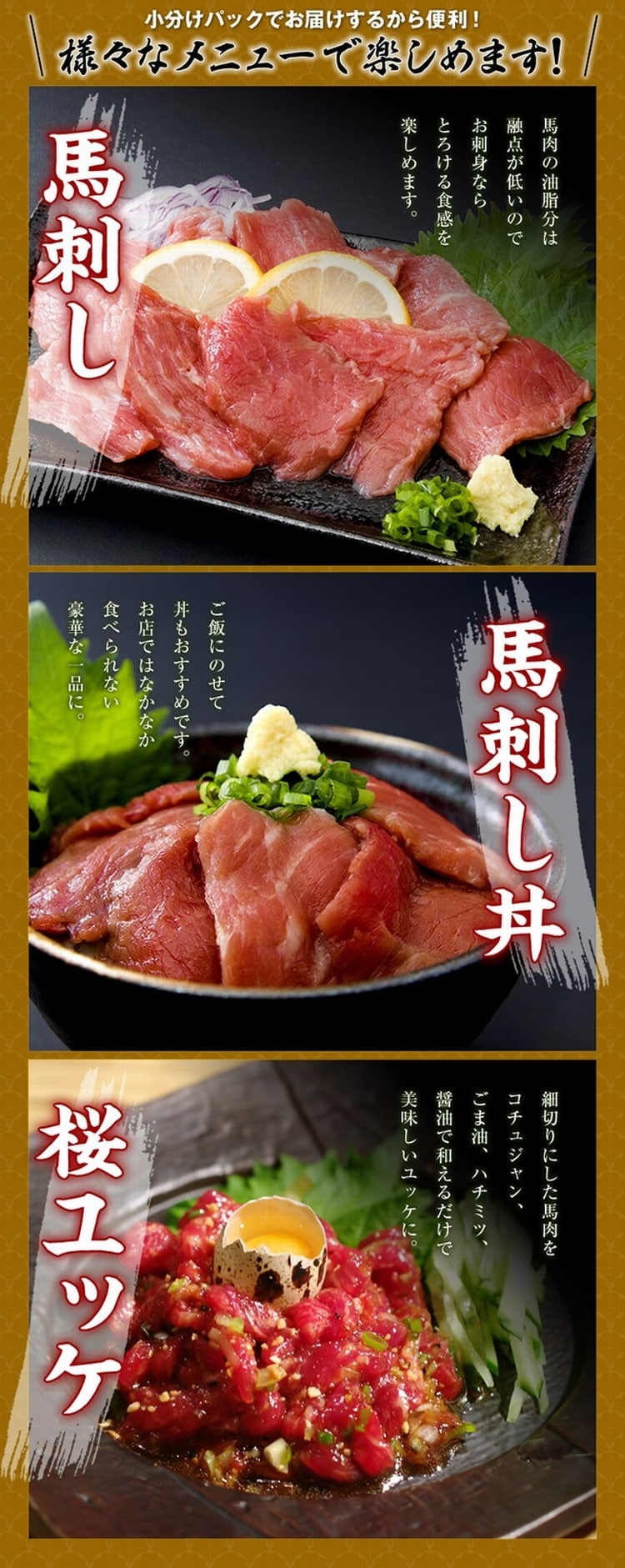 【約2kg(22~40本)】馬刺し上赤身ミニパック | 小分けパックで便利♪おかずのあと一品やおつまみが簡単に!低カロリーであっさりヘルシー