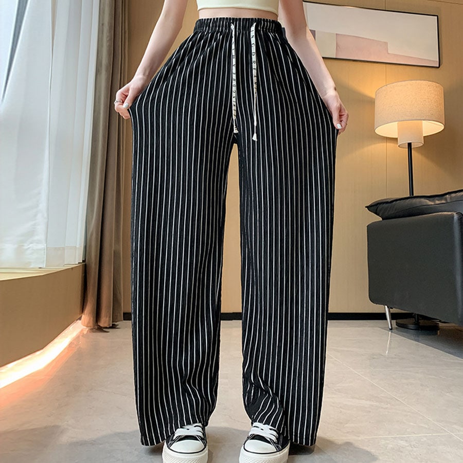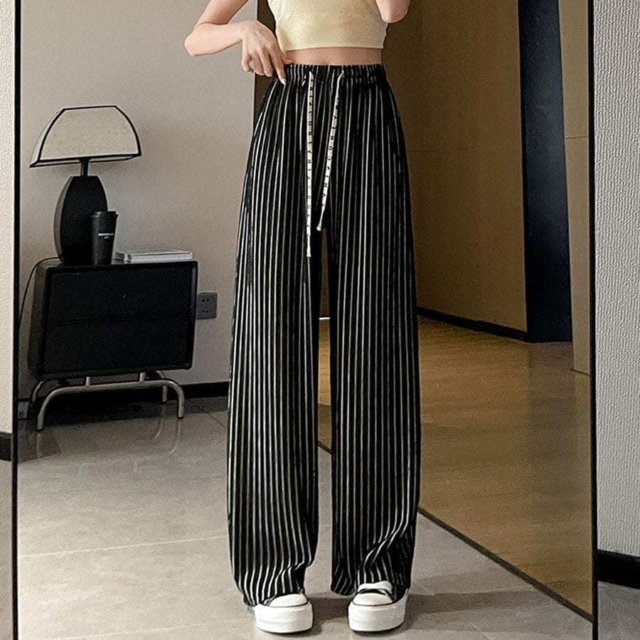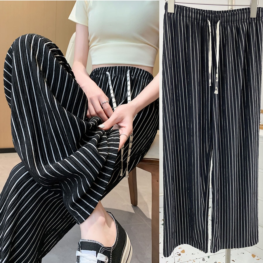 - 【ブラック】 ストライプワイドパンツ