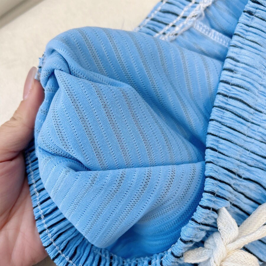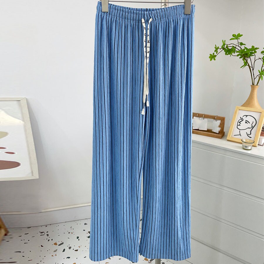 【ブルー】 ストライプワイドパンツ | サラサラとして柔らかいストレートワイドパンツ