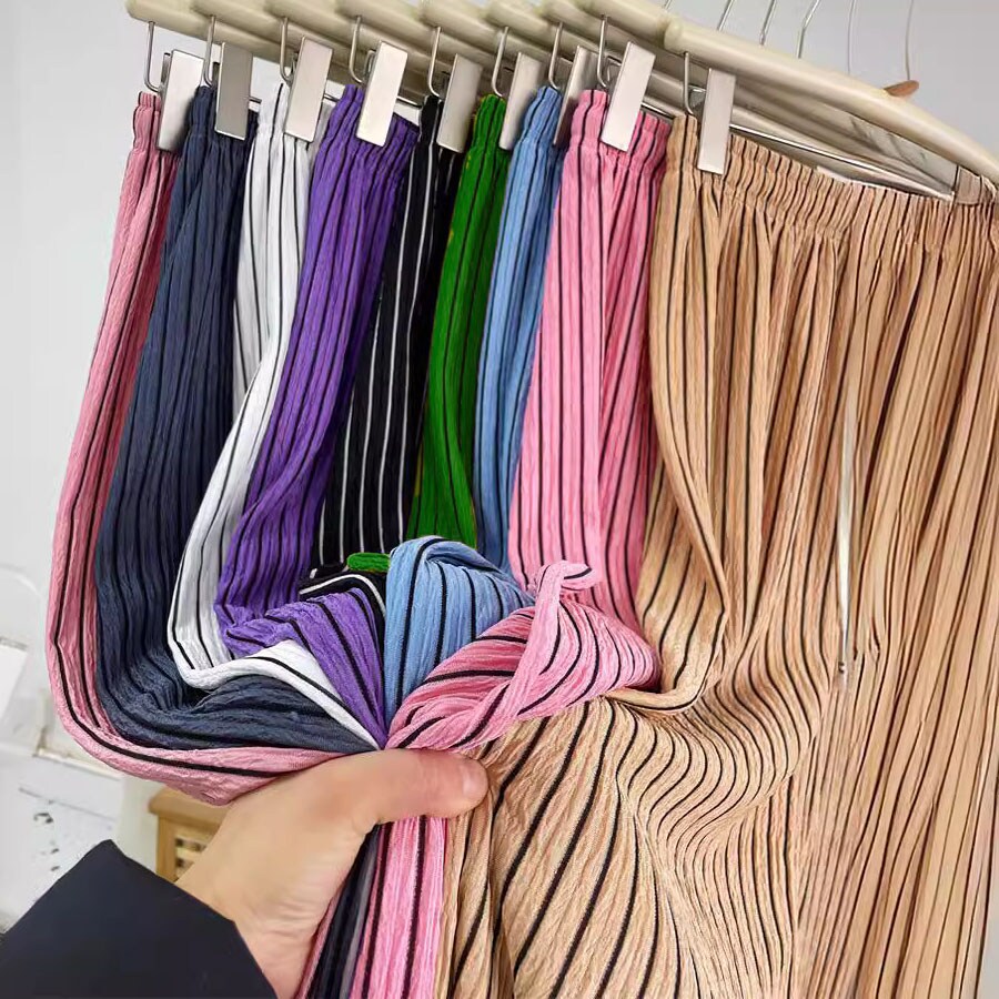 サラサラとして柔らかいストレートワイドパンツ。