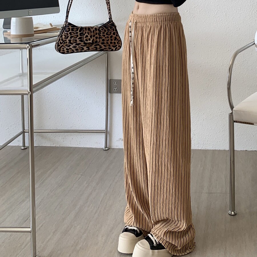 - 【キャメル】 ストライプワイドパンツ