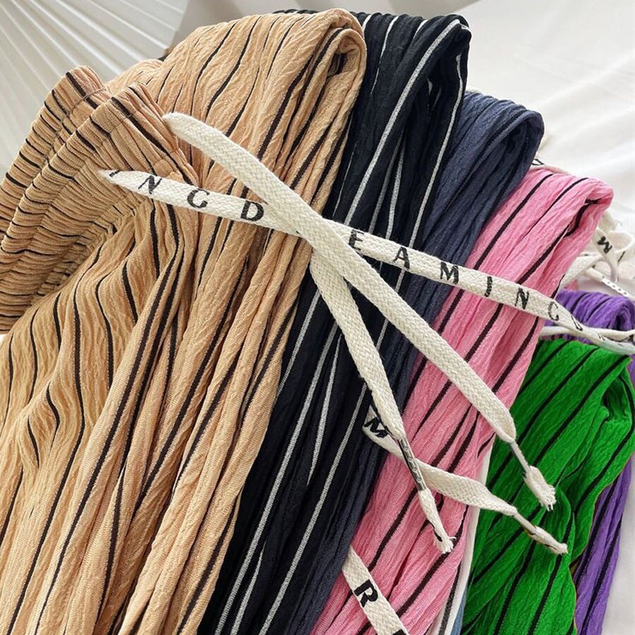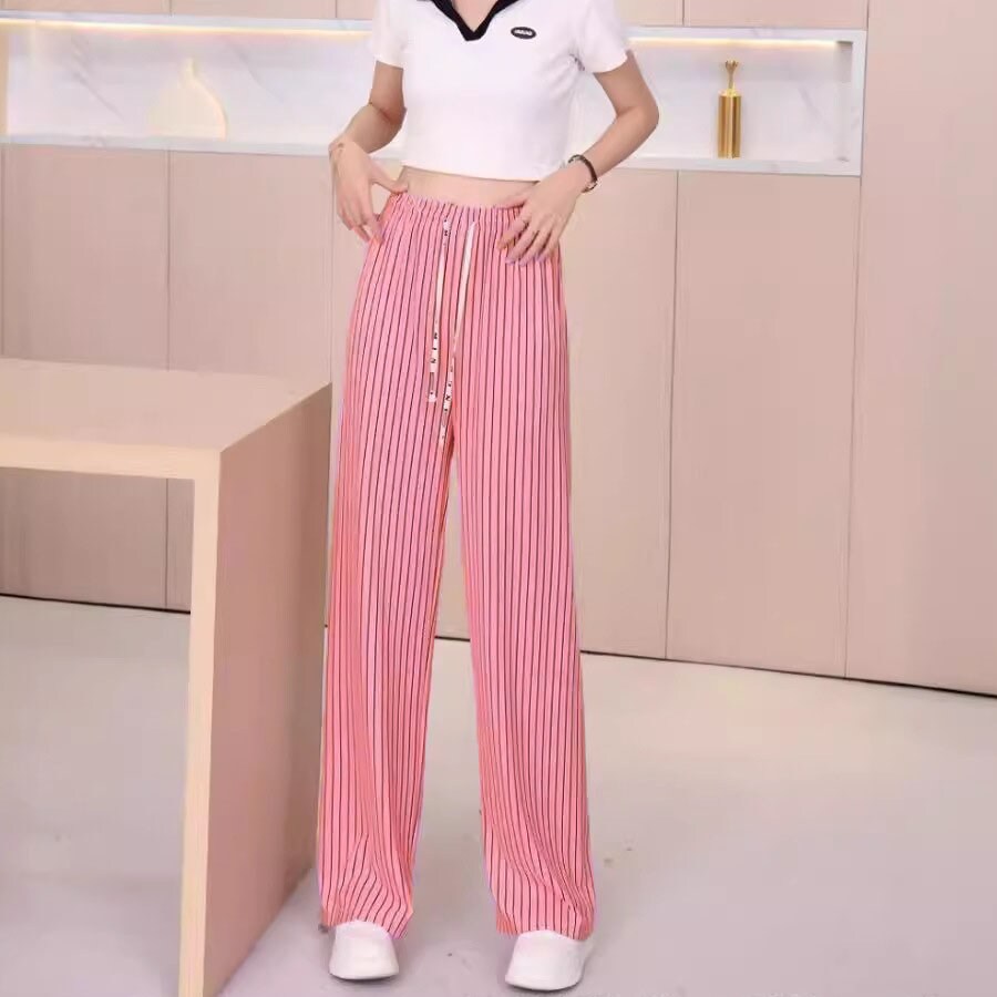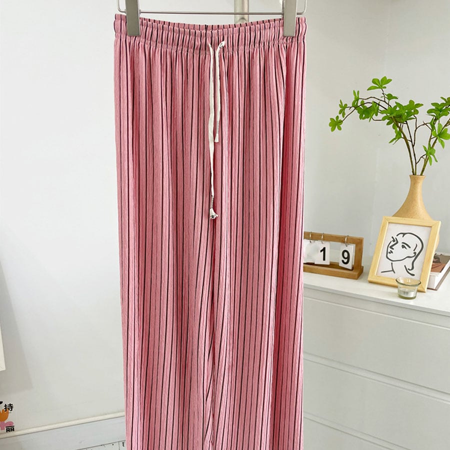 【ピンク】 ストライプワイドパンツ | サラサラとして柔らかいストレートワイドパンツ
