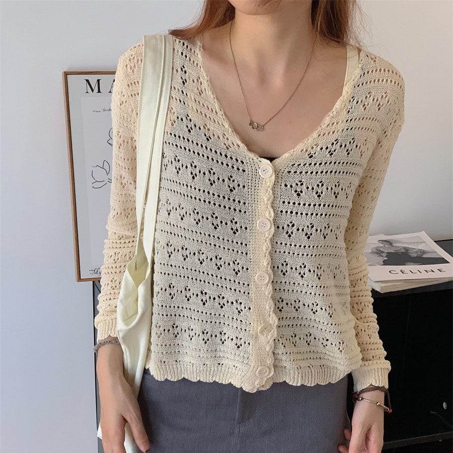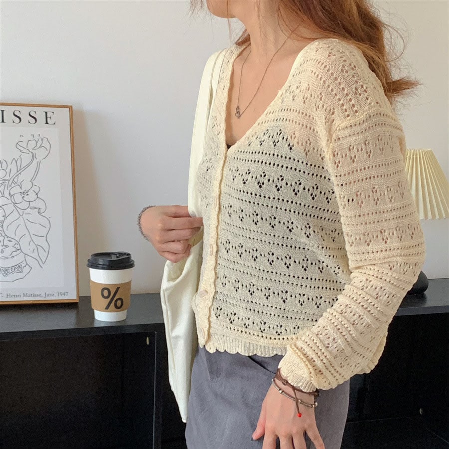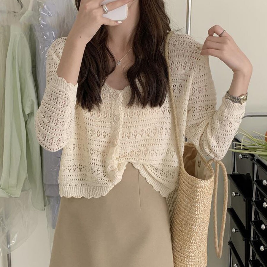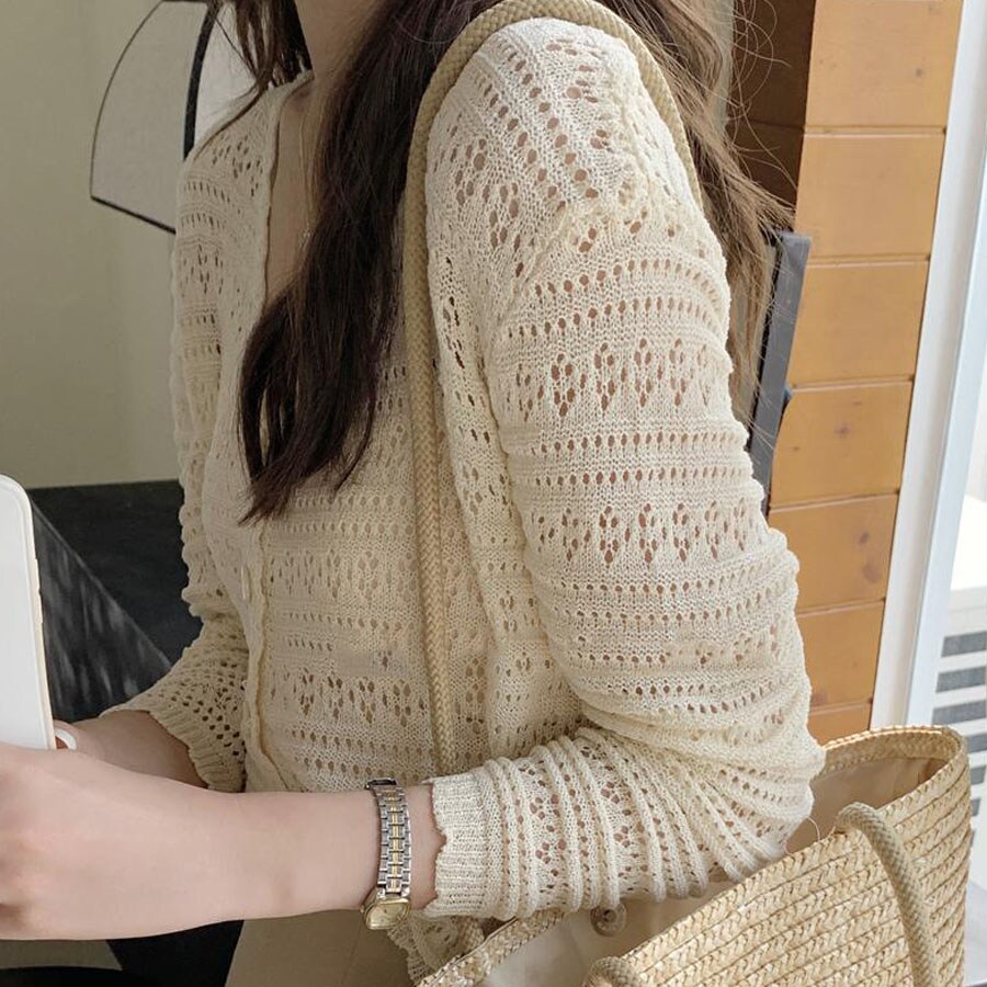 【ベージュ】薄手ニットカーディガン | お出掛けにも、オフィスやカジュアルにもちょっとした羽織ものに