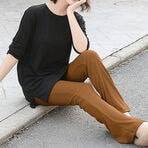 - 【キャメル/フラットタイプ】 ウエストゴム フレアリブパンツ