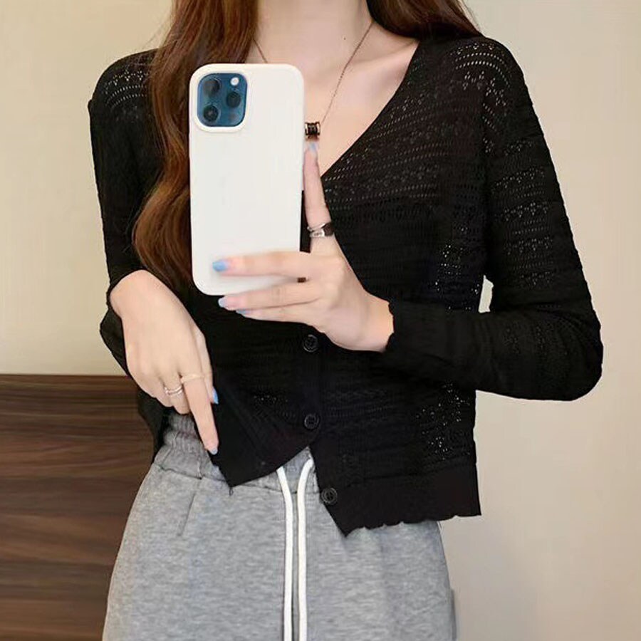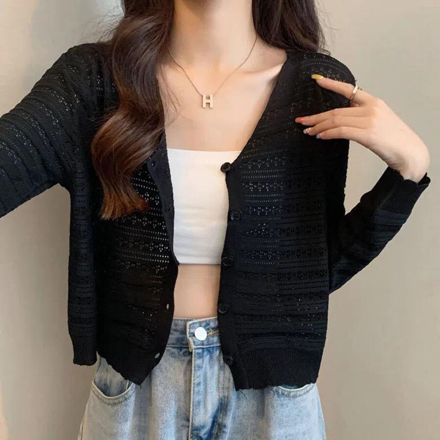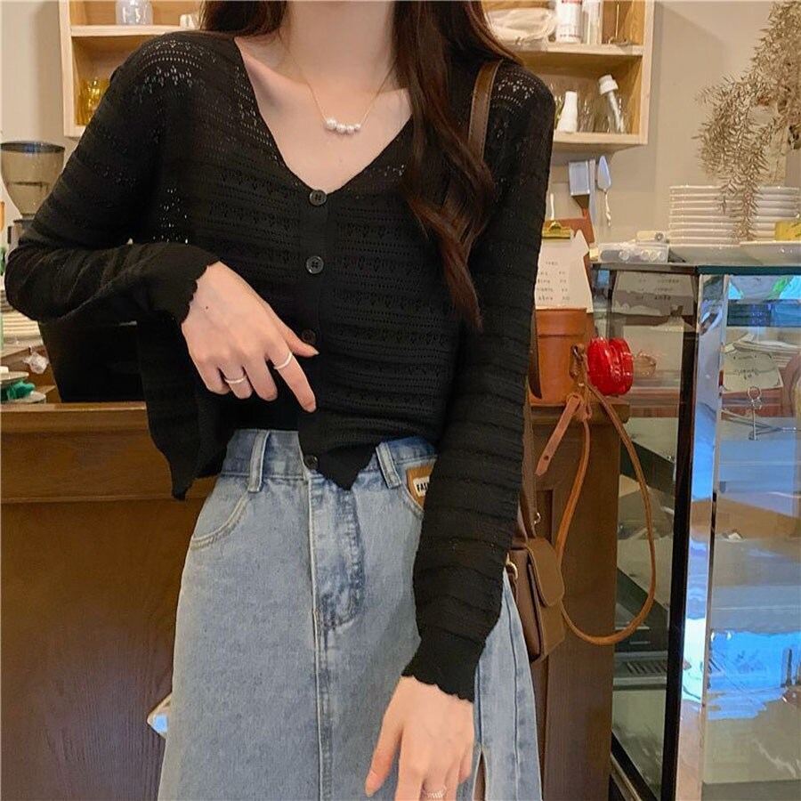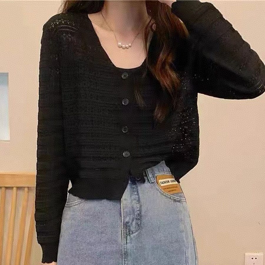 【ブラック】薄手ニットカーディガン | お出掛けにも、オフィスやカジュアルにもちょっとした羽織ものに