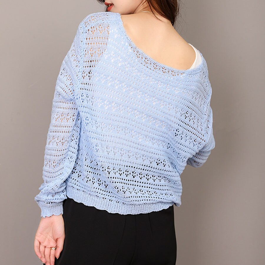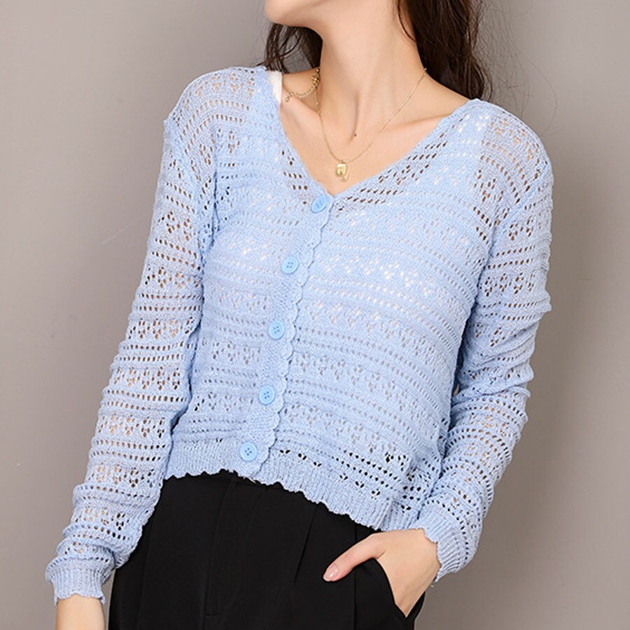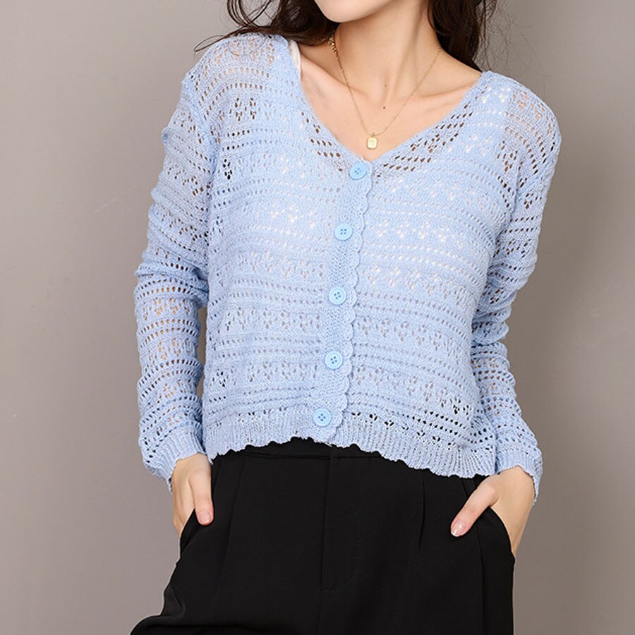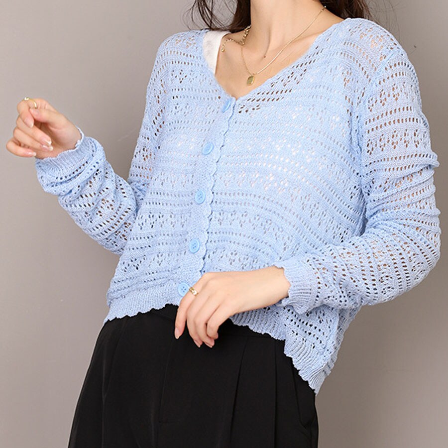 【ライトブルー】薄手ニットカーディガン | お出掛けにも、オフィスやカジュアルにもちょっとした羽織ものに
