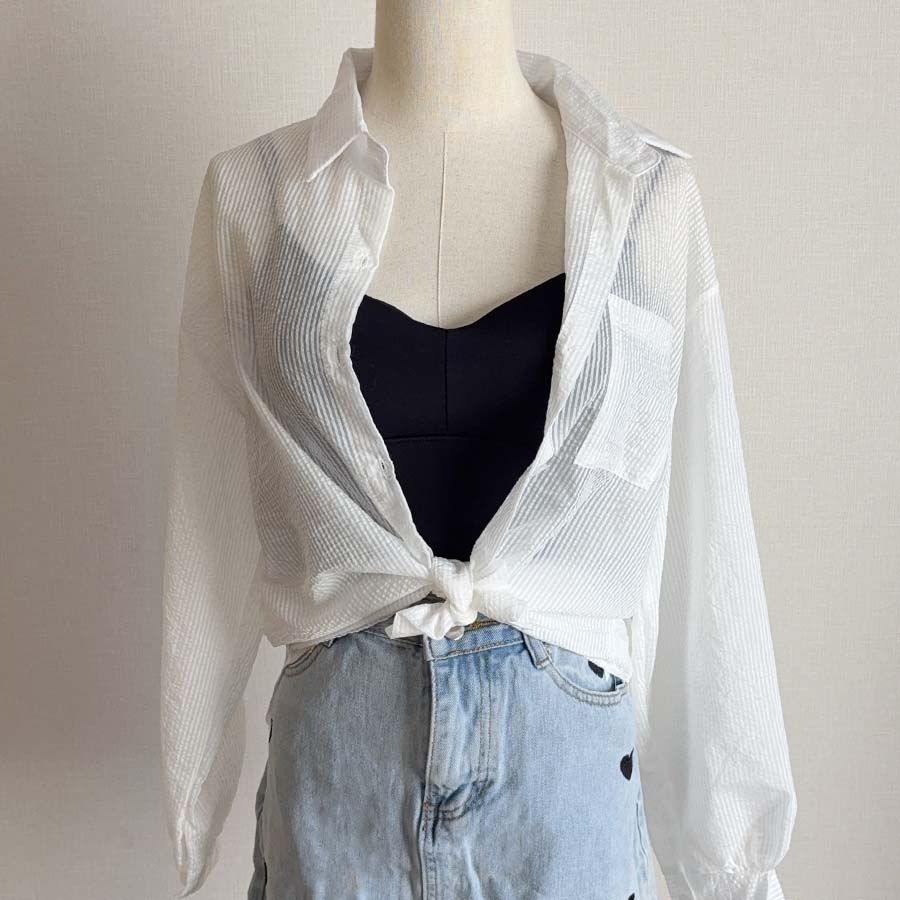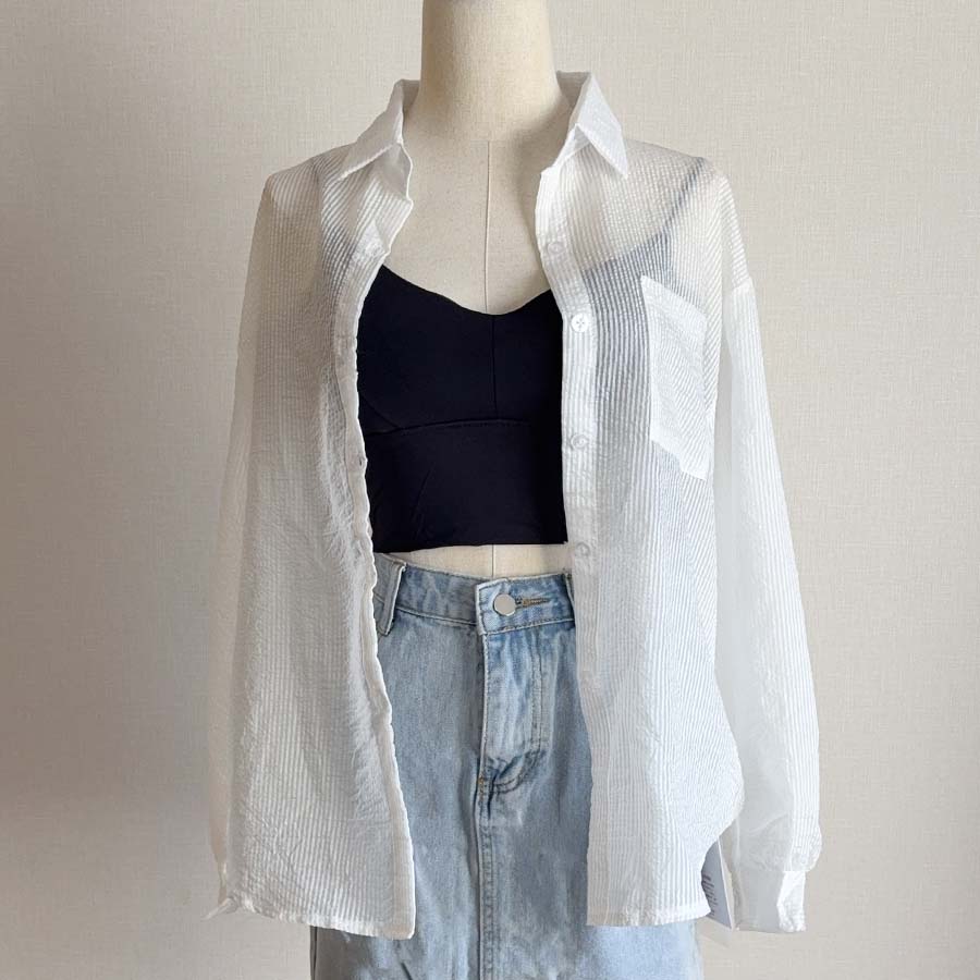 夏の季節にピッタリな透け感のあるシャツカーディガン。