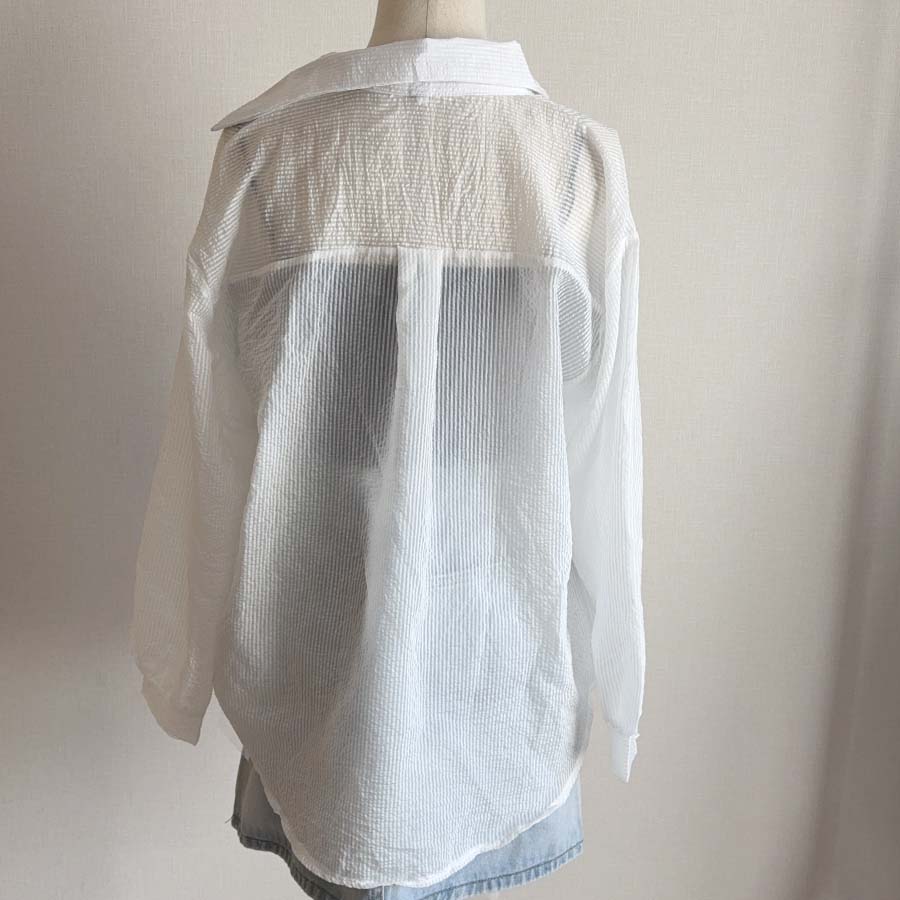 - 【ホワイト】シャツカーディガン 透け感ボーダー
