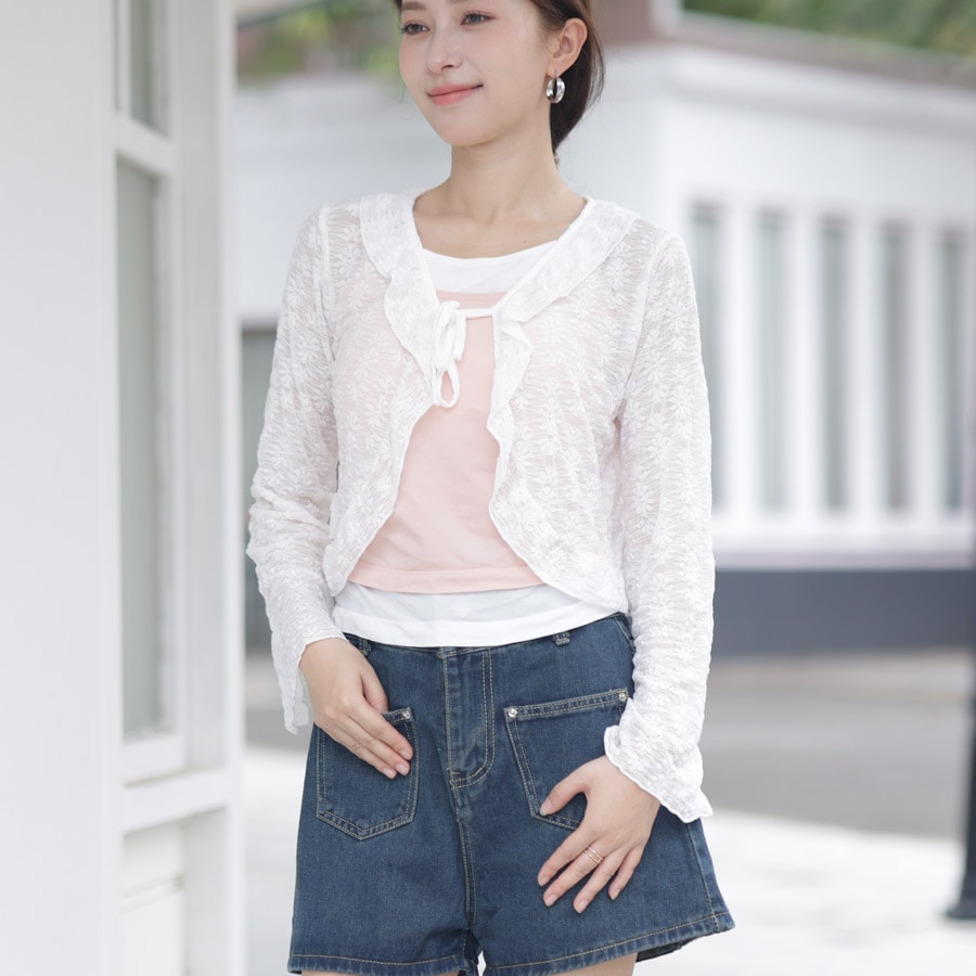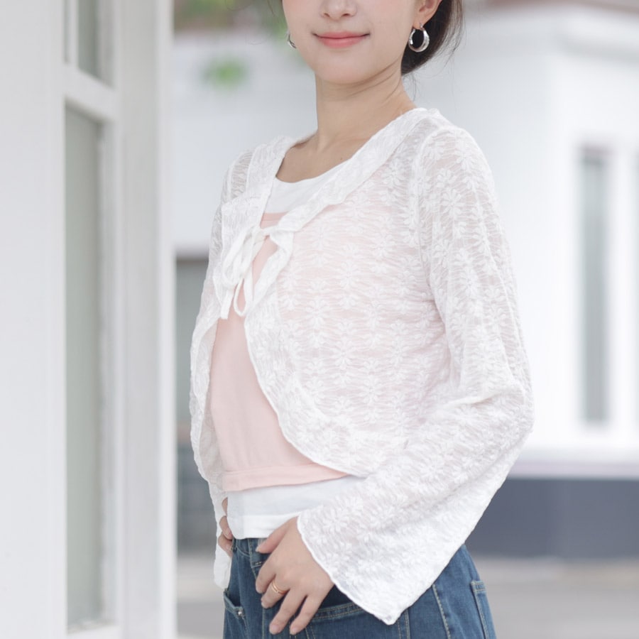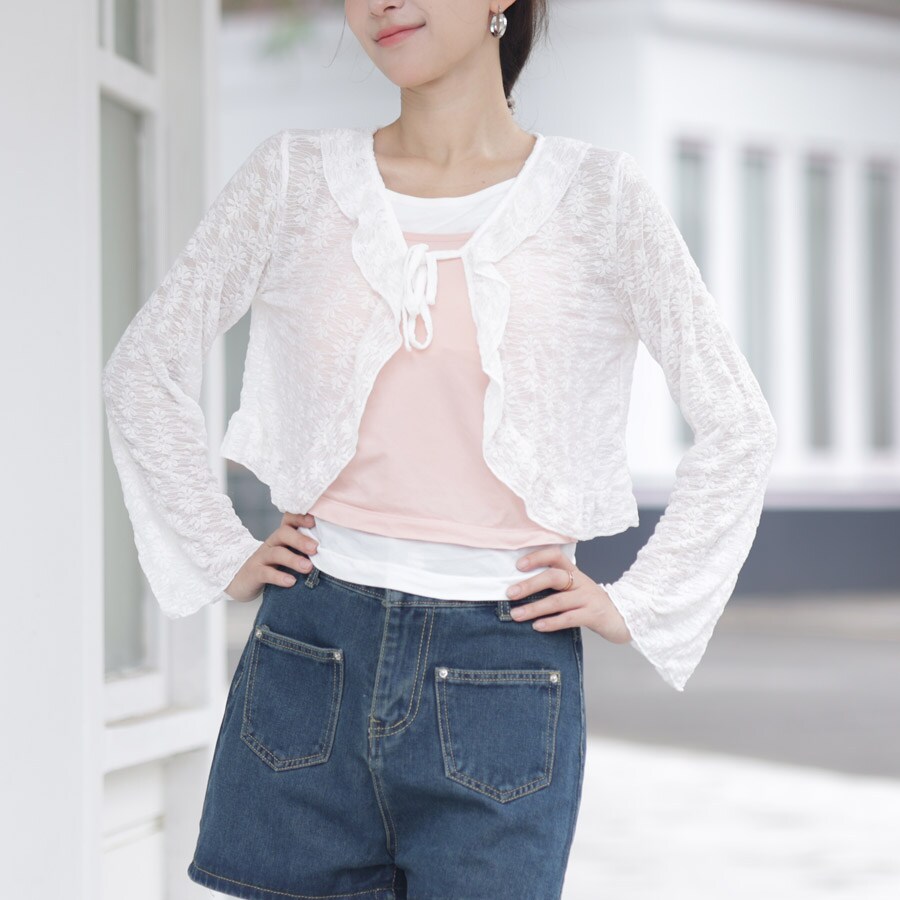【ホワイト】透かし編みサマーカーディガン | お出かけにもオフィスでも使える万能アイテム