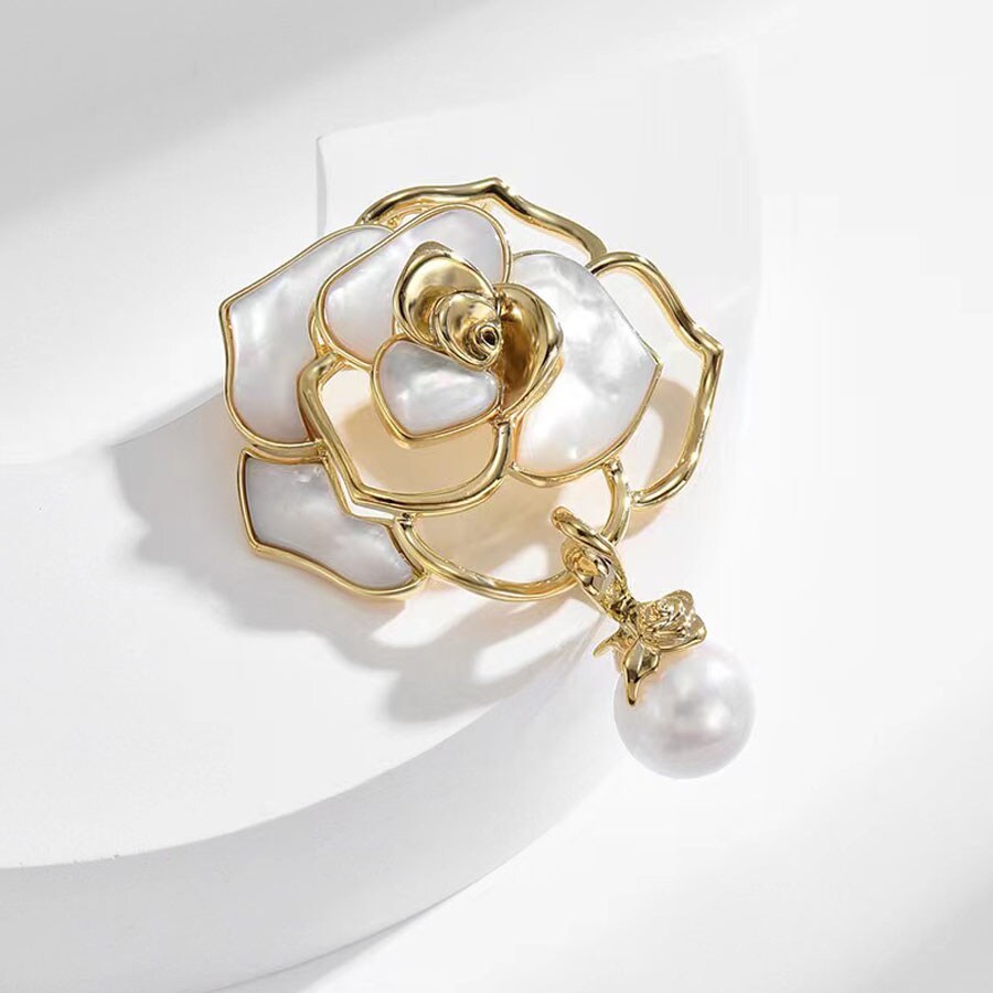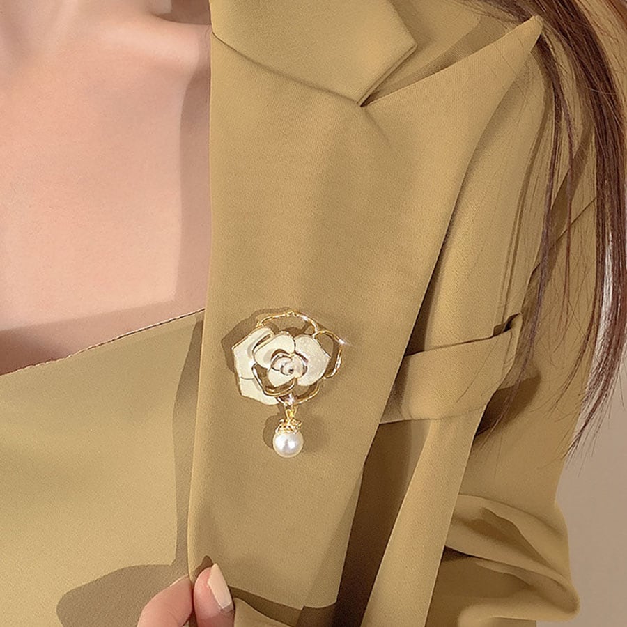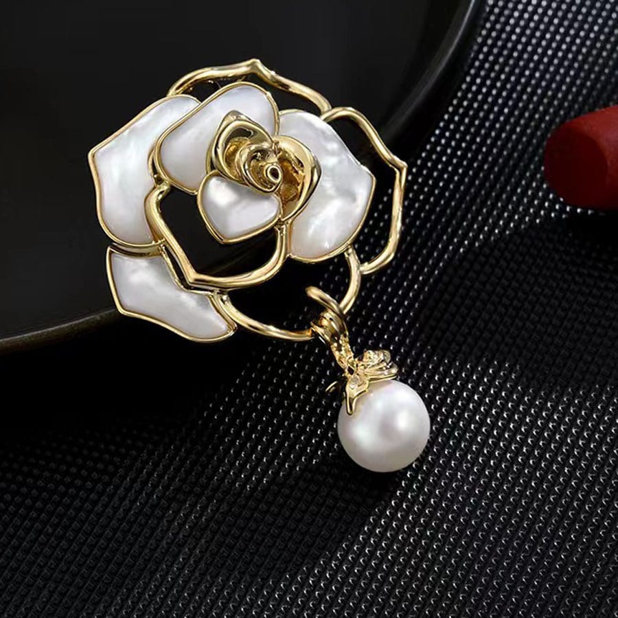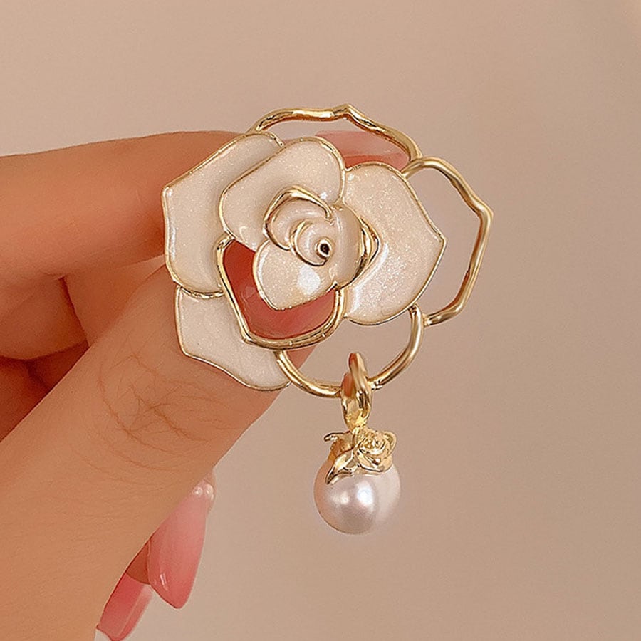 【ホワイト】ローズモチーフブローチ | ローズとパールが上品なブローチ