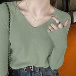 - 【ライトグリーン】薄手 Vネックニットソー