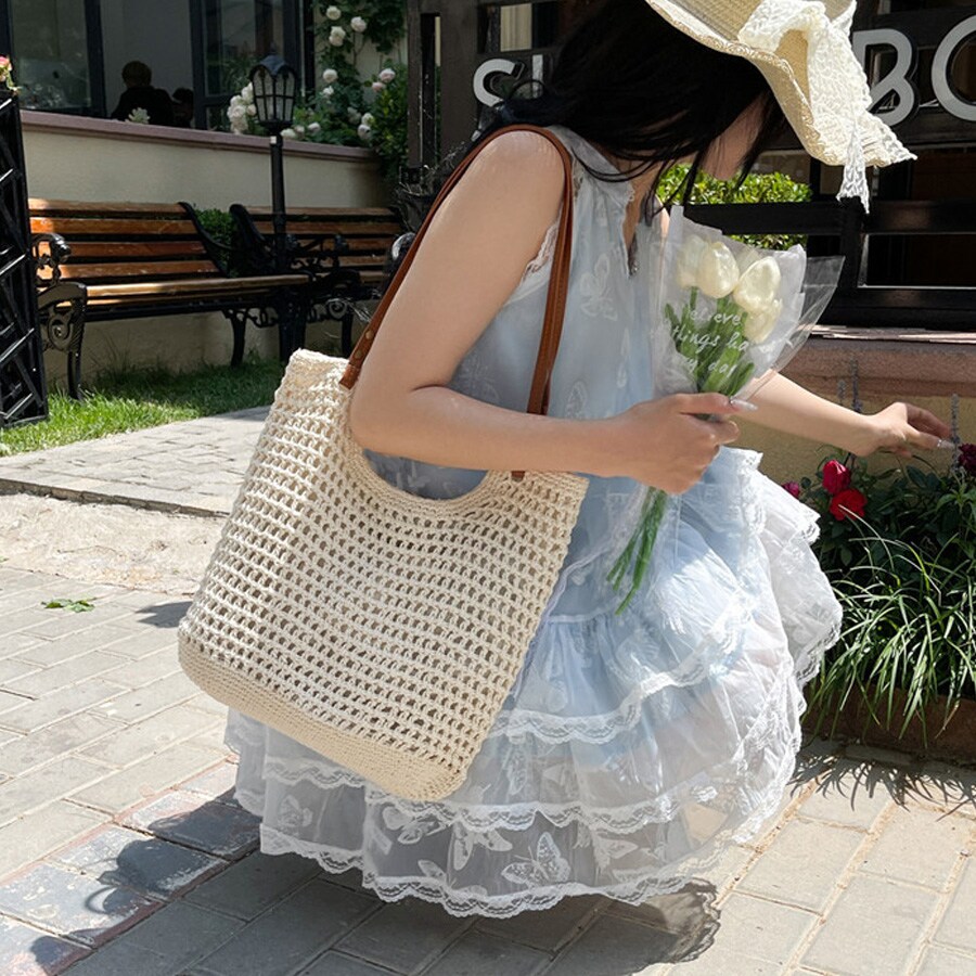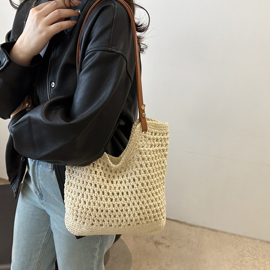 【ベージュ】レディース編みバッグ | 軽くて使いやすいおしゃれなバッグ
