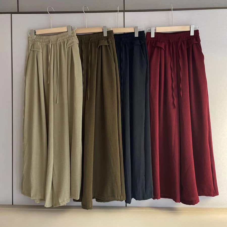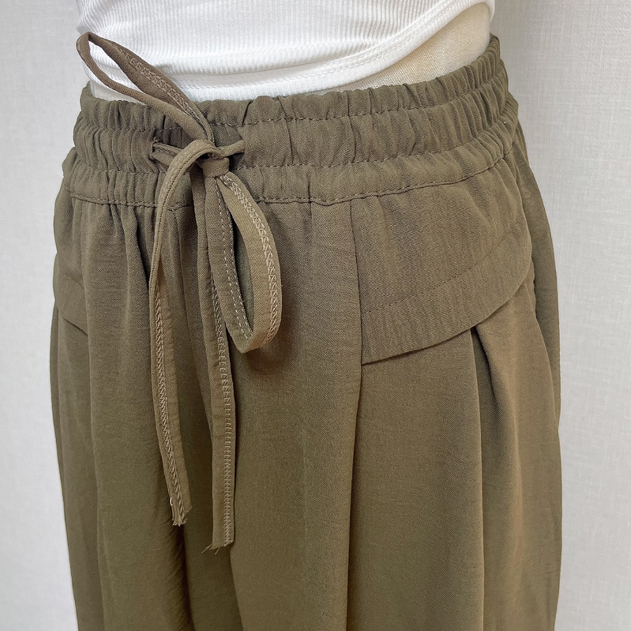 サラサラとして柔らかいフレアデザインのワイドパンツ。