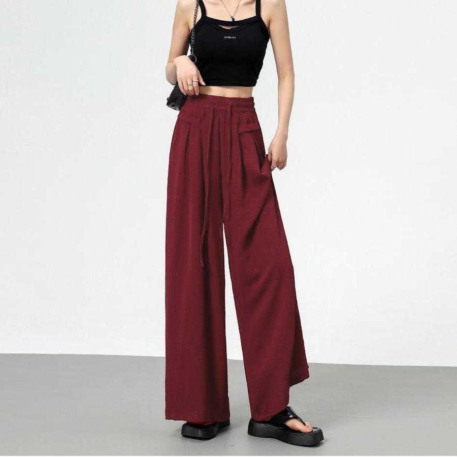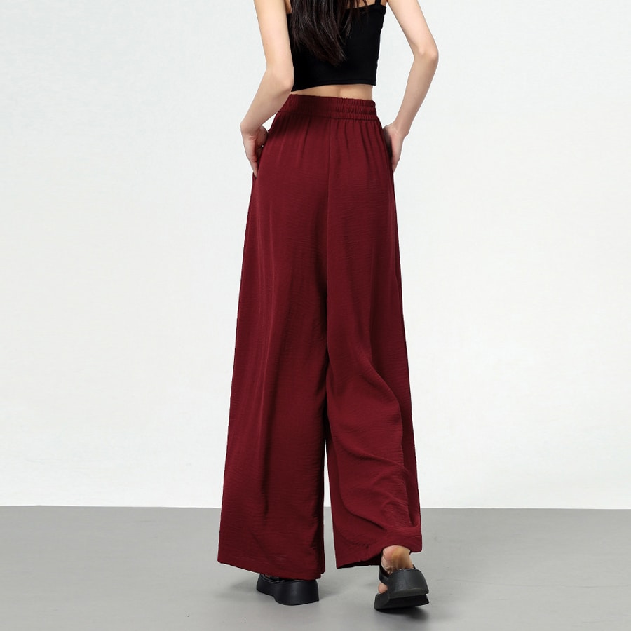 【ワインレッド】フレアデザインワイドパンツ | ワイドシルエットで体型カバーにもおすすめ