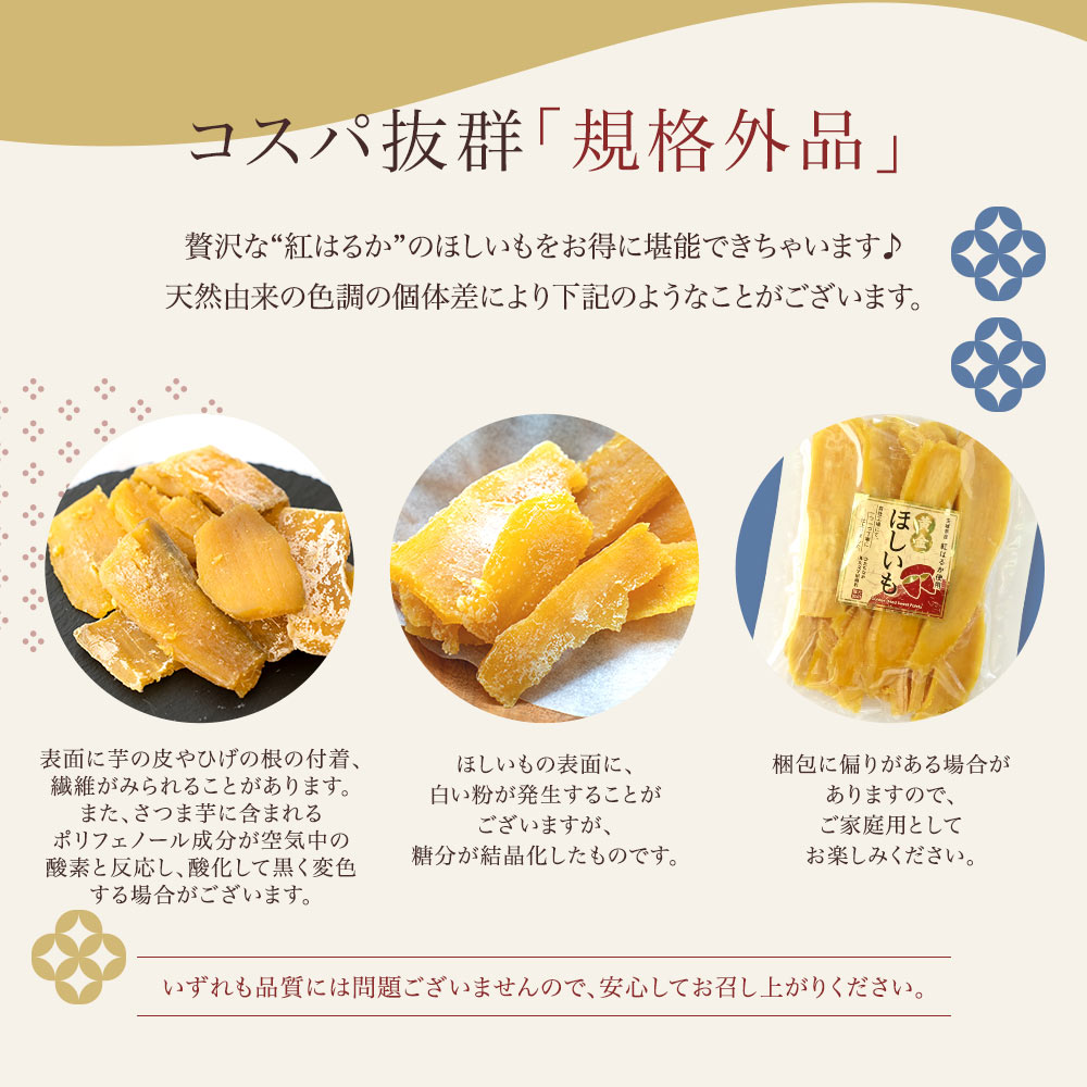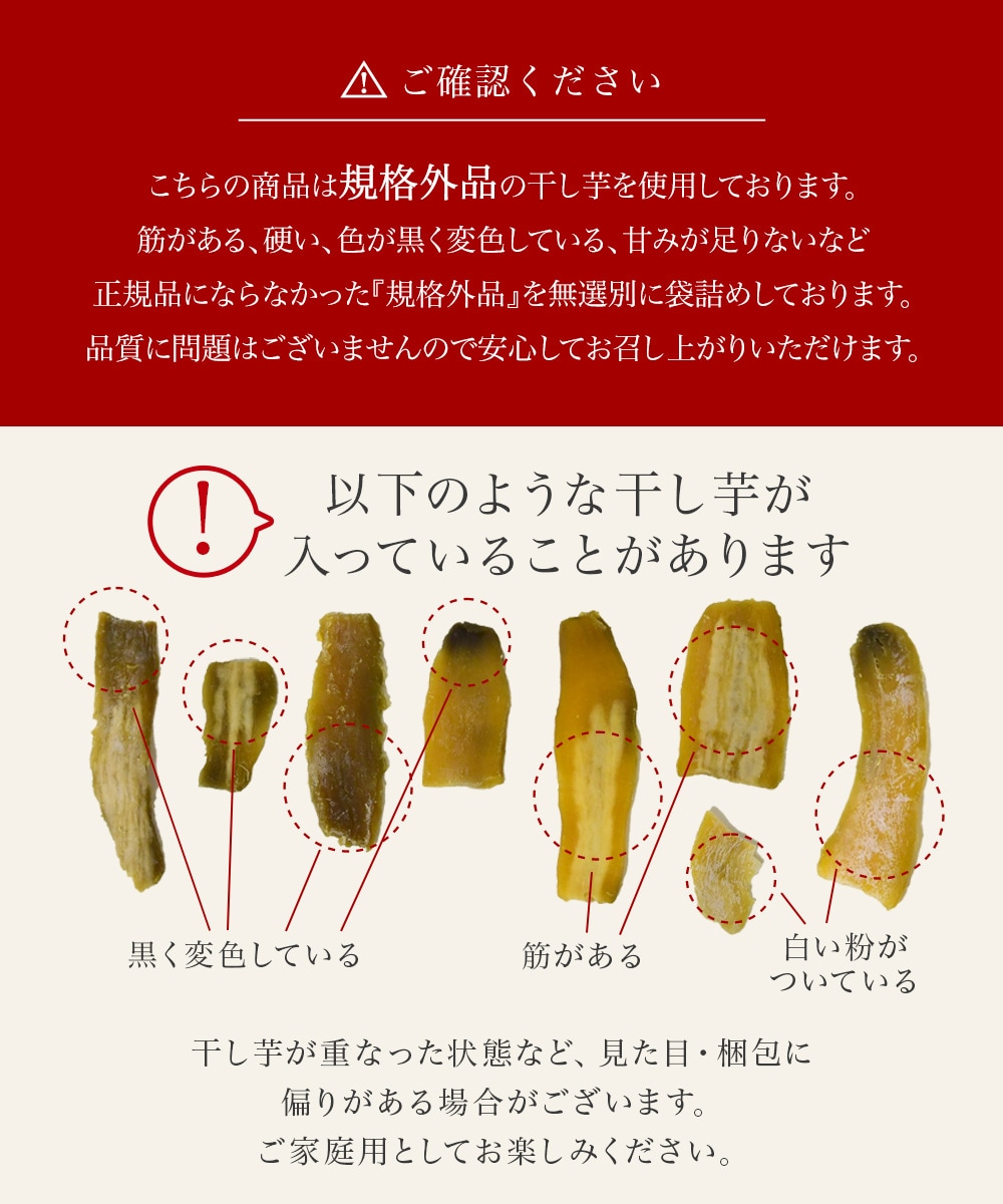・ほしいもが重なった状態など、見た目・梱包に偏りがある場合がございます。ご家庭用としてお楽しみください。