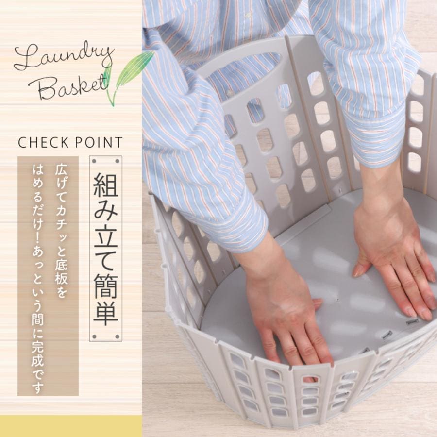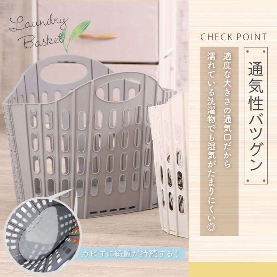 【アイボリー】折りたたみランドリーバスケット | 折りたたんで省スペース収納!軽量で持ち運び簡単!