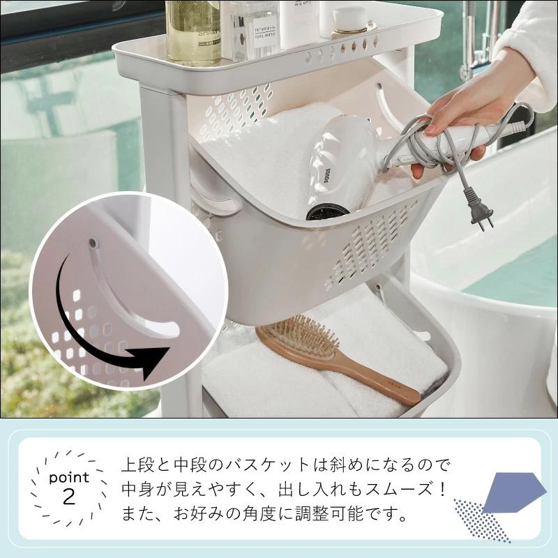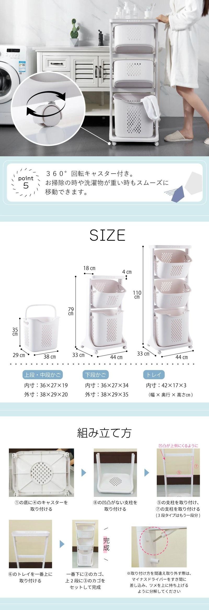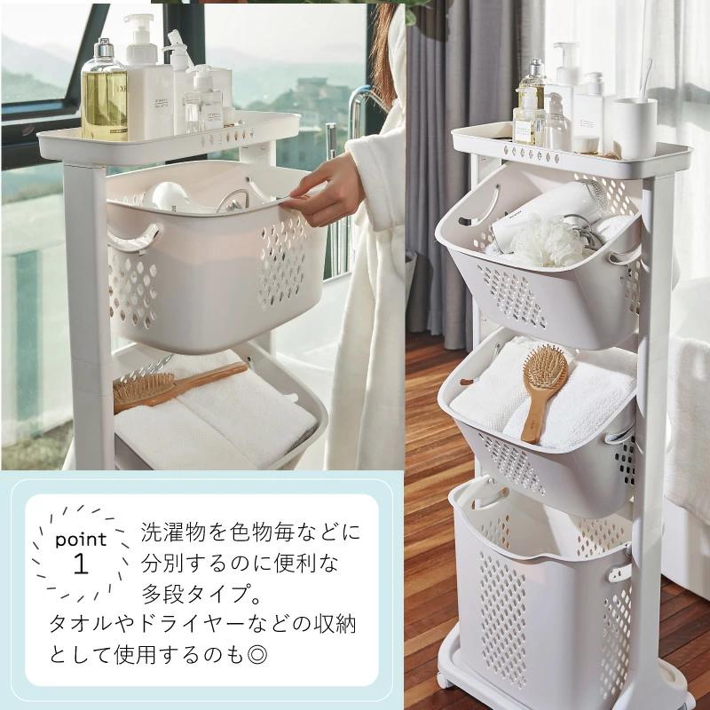 【3段】キャスター付きランドリーバスケット | 大容量で使いやすい!キャスター付きで移動も簡単