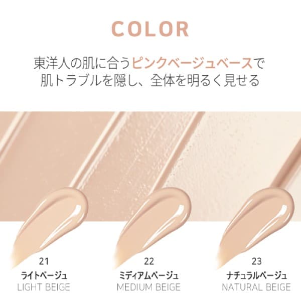 ピンクベージュベースで、肌トーンを明るく表現し、自然にカバーします。