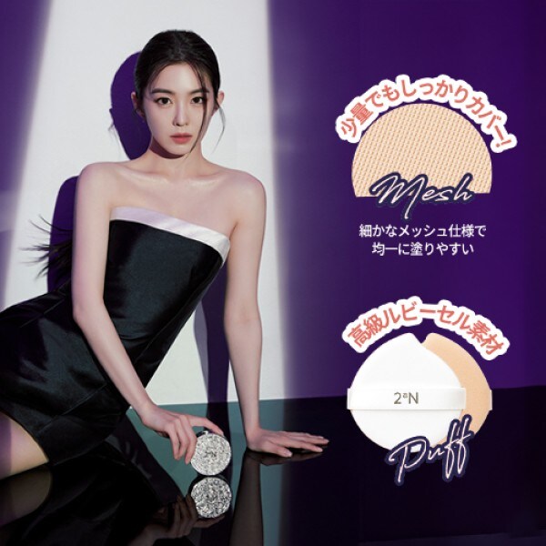 ツボクサ抽出物成分と(EGF) 配合で、塗ってる間に肌をケアする、軽く密着、明るくてツヤのある肌を演出するクッションファンデーションです。