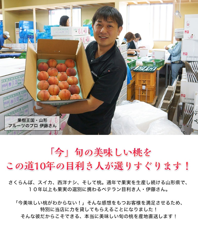 - フルーツのプロ 伊藤さんが選ぶ『旬の桃』 山形県産 約2kg(7~10玉) 産地箱 ※常温