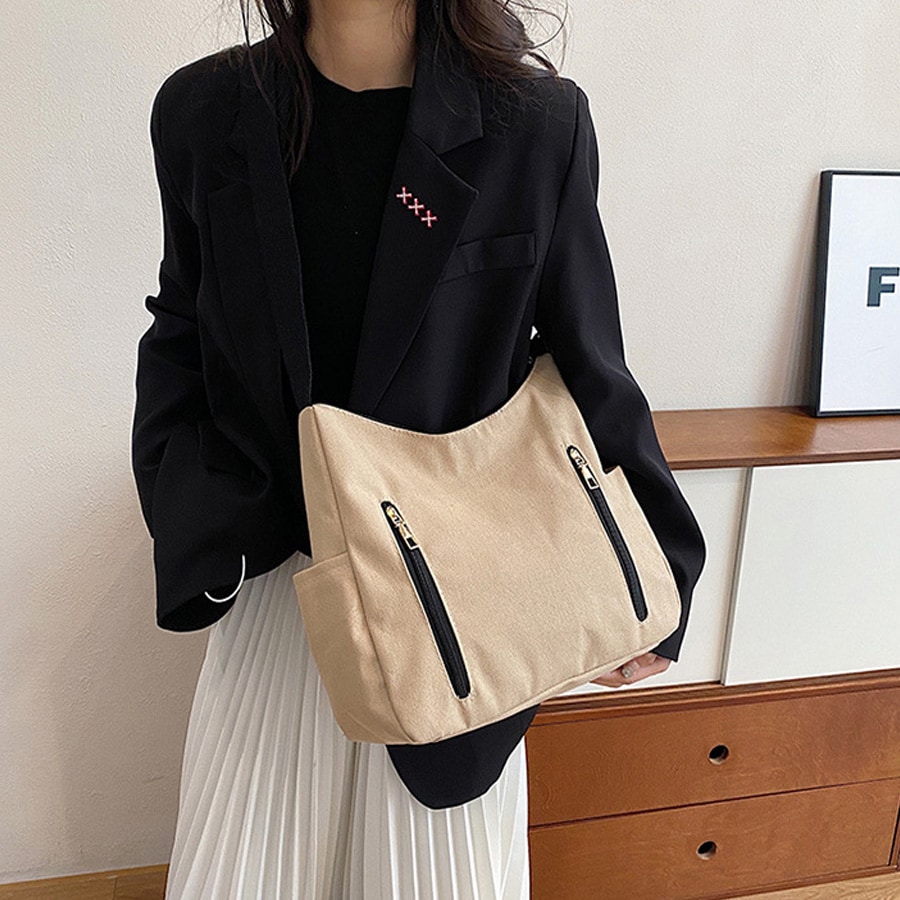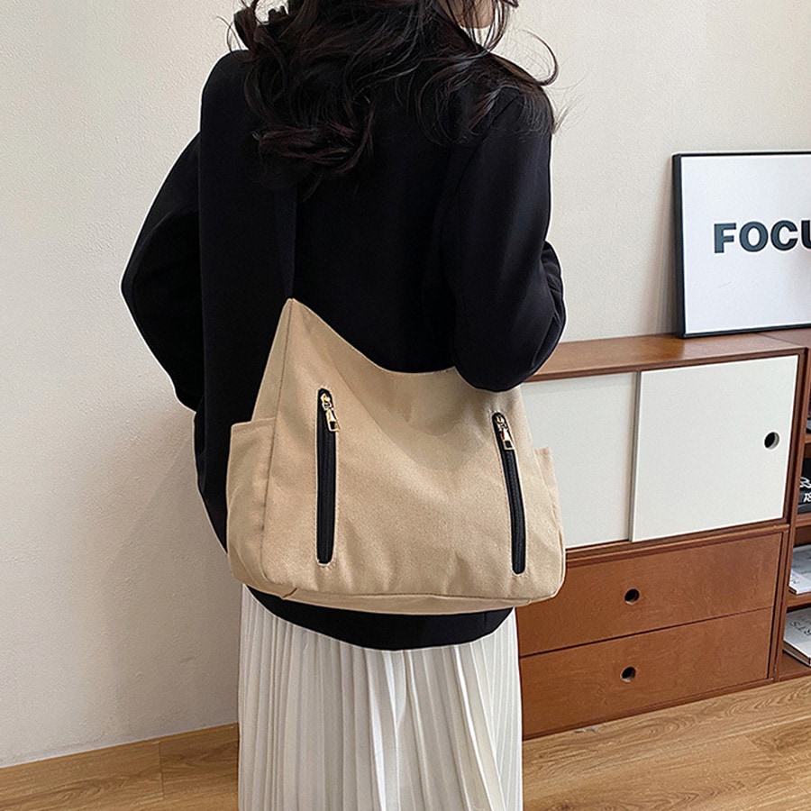 【ベージュ】キャンパストートバッグ | 年齢性別問わず使えるシンプルで合わせやすいカジュアルなバッグ