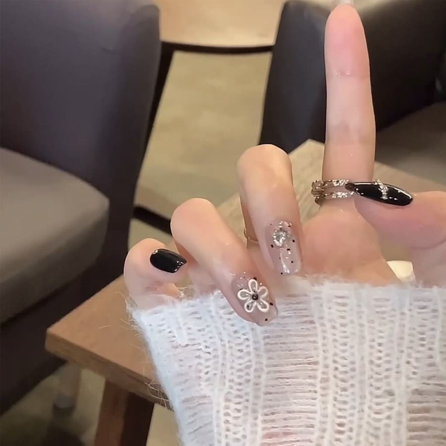 - 【30枚入】ネイルチップ モノトーン風フラワーデザイン