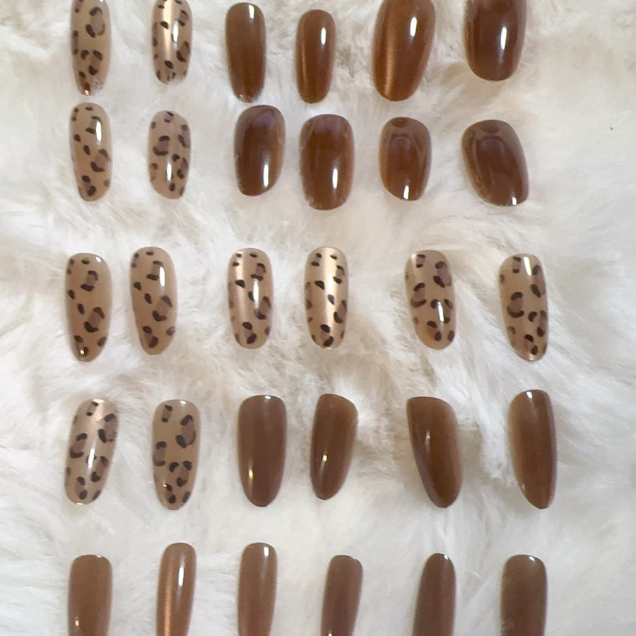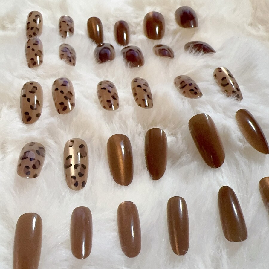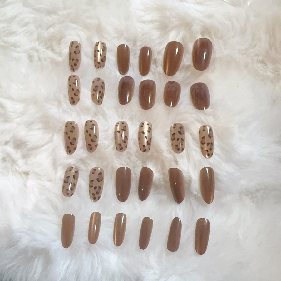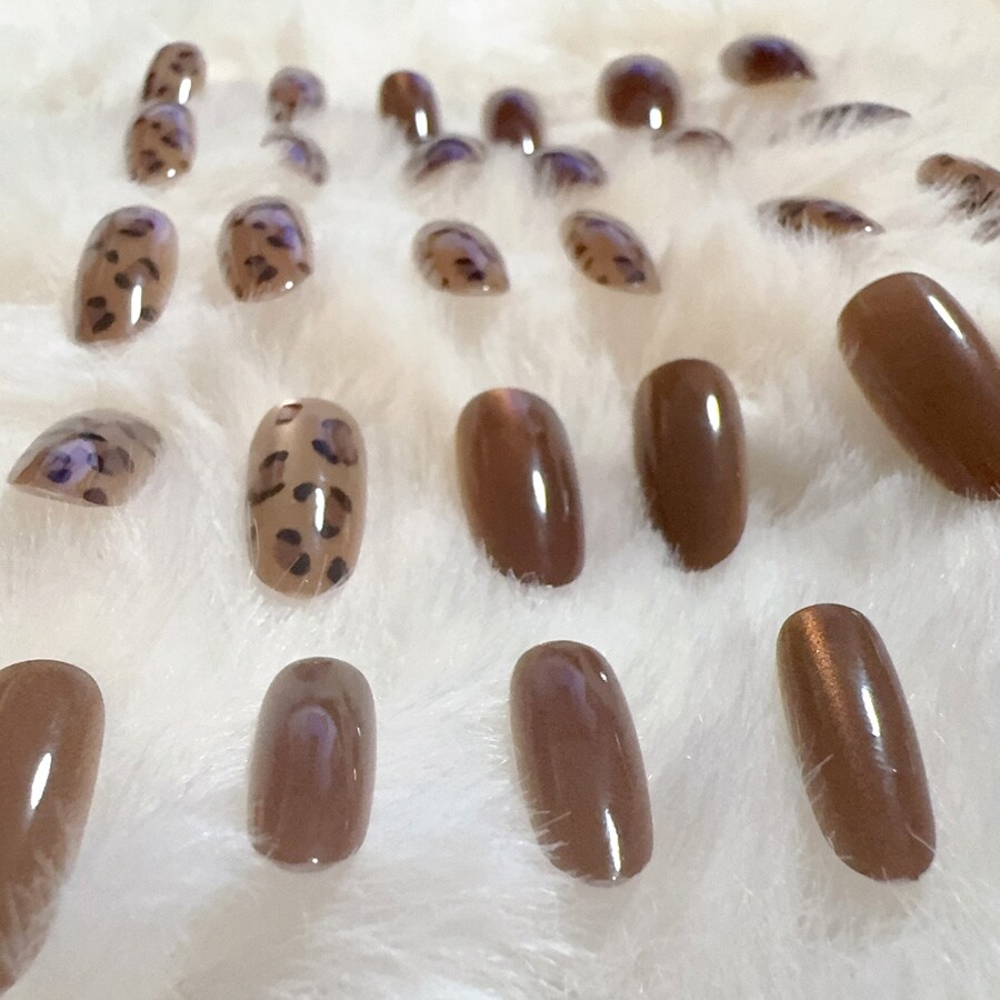 - 【30枚入】ネイルチップ アニマル柄風ブラウンネイル