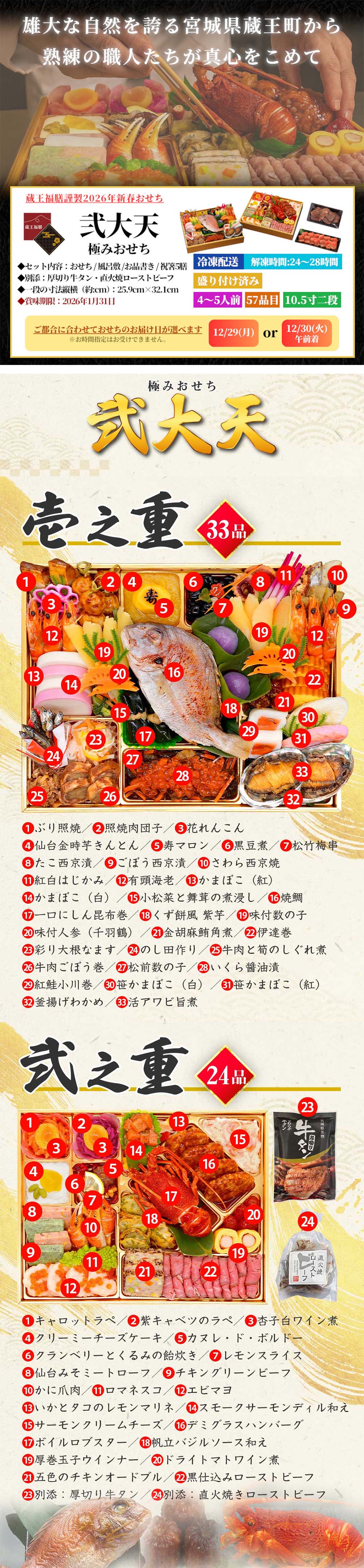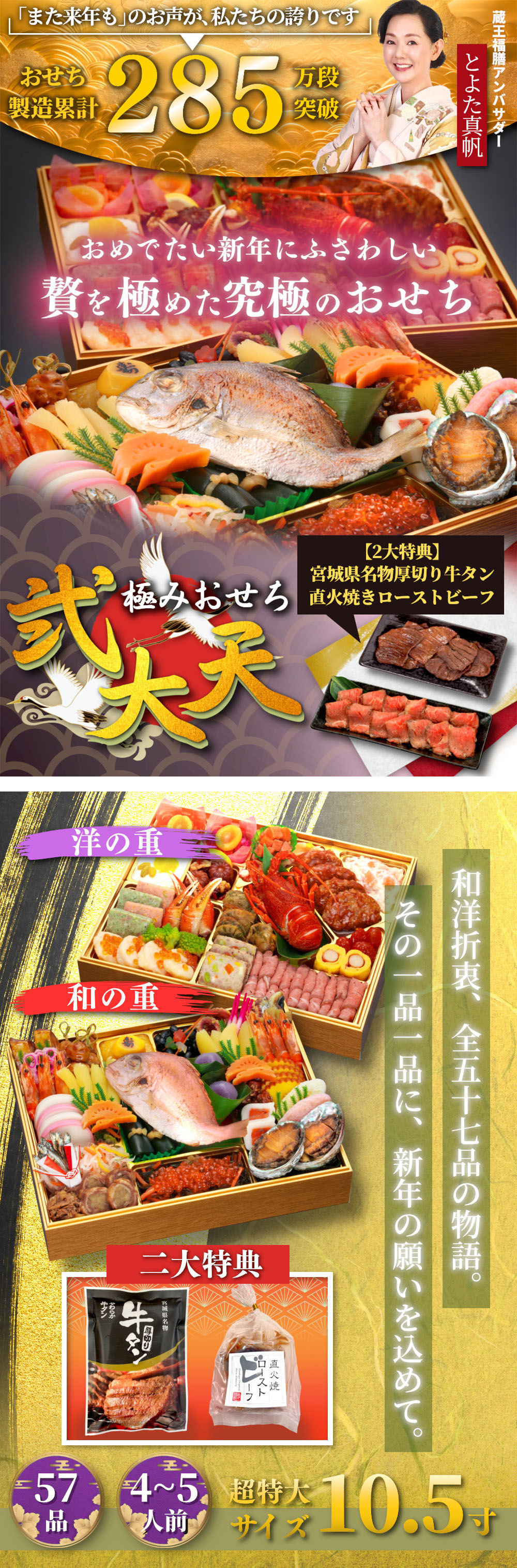 - 【12/30午前着】おせち「弐大天」(10.5寸長方/57品/4-5人前/極みおせち)