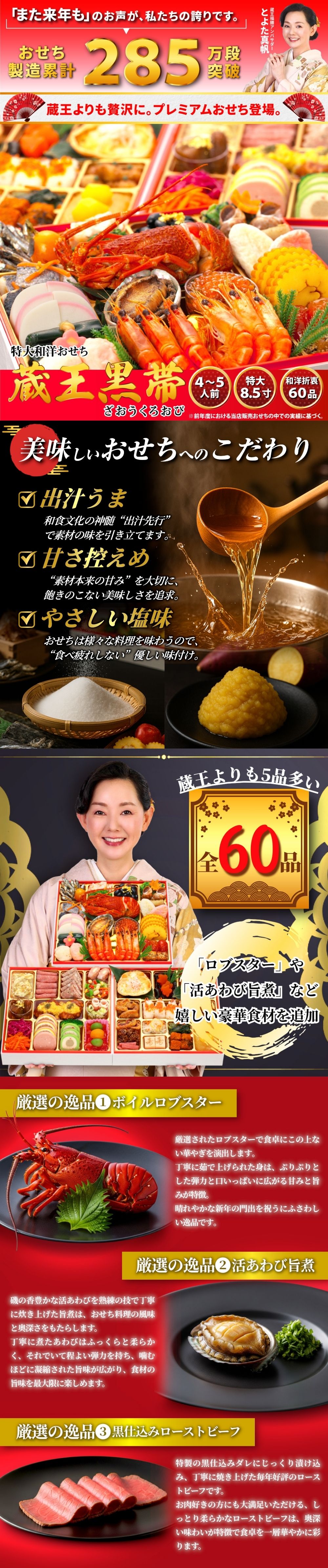 【12/30午前着】おせち「蔵王黒帯」(60品/4~5人前) | 蔵王よりも贅沢に。プレミアムおせち登場。