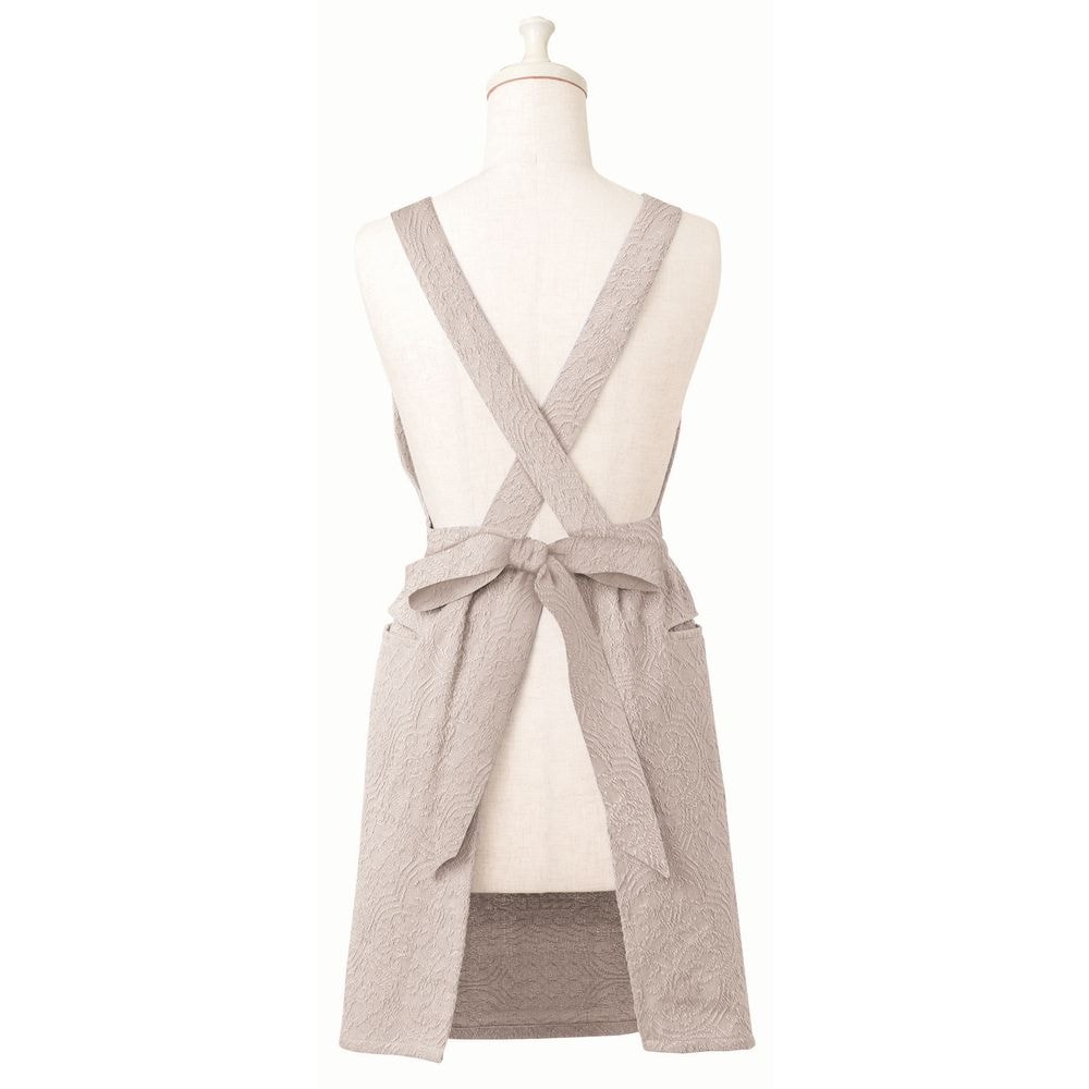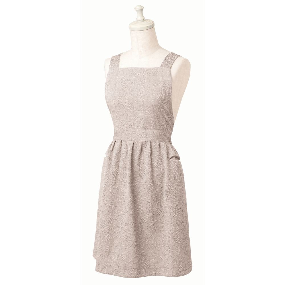 【アイボリー】ワンピース型エプロン アデール | 上品なアラベスク柄をジャガード織で仕上げたデザインが大人っぽいおしゃれなエプロン。
