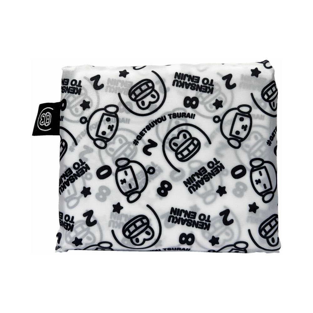 【総柄ホワイト】けんさくとえんじん ショッピングバッグ | けんさくとえんじんのキャラクターが可愛い折りたたみショッピングバッグ