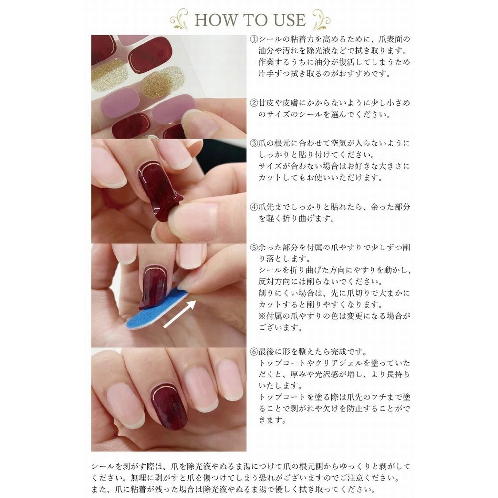 このジェルネイルシールを貼れば誰でも簡単に、まるでジェルネイルのような仕上がりに。
