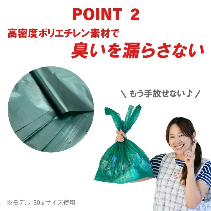 優しいグリーンカラーで中身が見えにくいので、生ごみやサニタリー用品も捨てやすい。