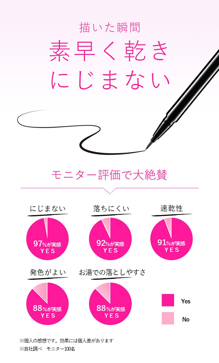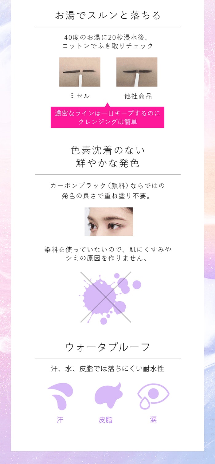 汗、皮脂、水に強く、黒ずみ知らずでラインをしっかりキープ。