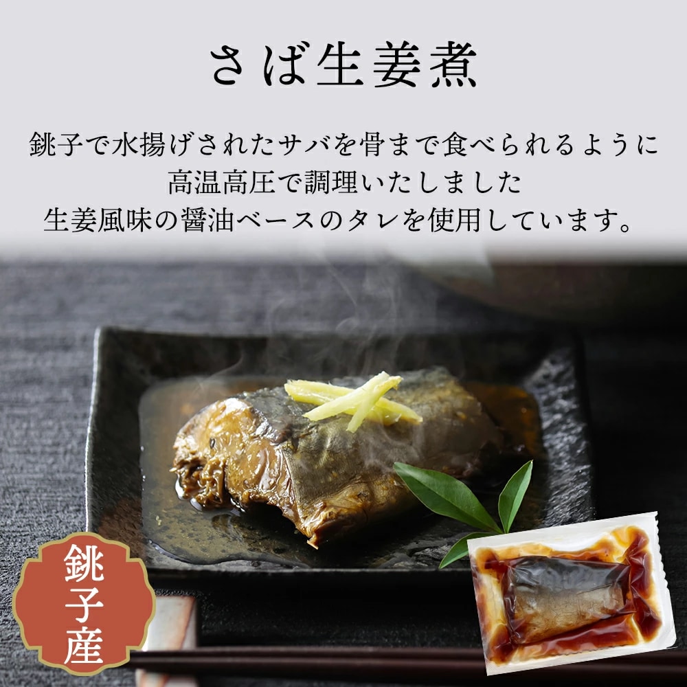 商品特長:銚子で水揚げされたさばを骨まで食べられるように高温高圧で調理いたしました。生姜風味の醤油ベースのタレを使用しています。