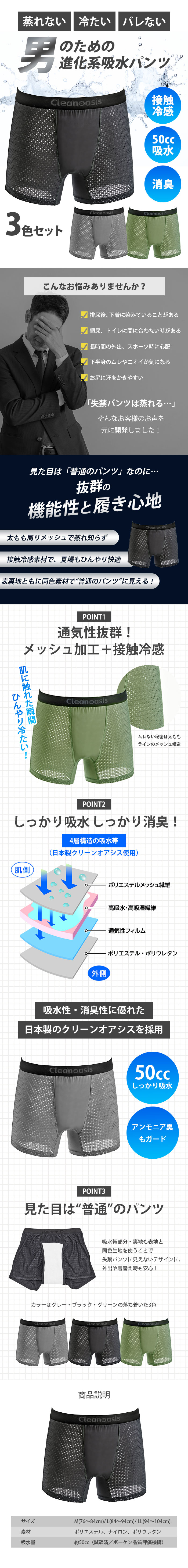 【3枚セット/Lサイズ】超爽快!メッシュ吸水安心パンツ | ★接触冷感&メッシュ加工で失禁パンツ利用者のお悩み解決!