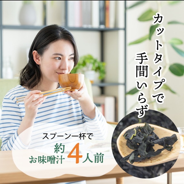 機能性成分が豊富なワカメは、毎日欠かさず摂り たい食材の一つです。どんな料理にも合わせやすく、 保存の利く乾燥ワカメだから、常備しておきたい 食材ですね。ご家族の健康管理に!