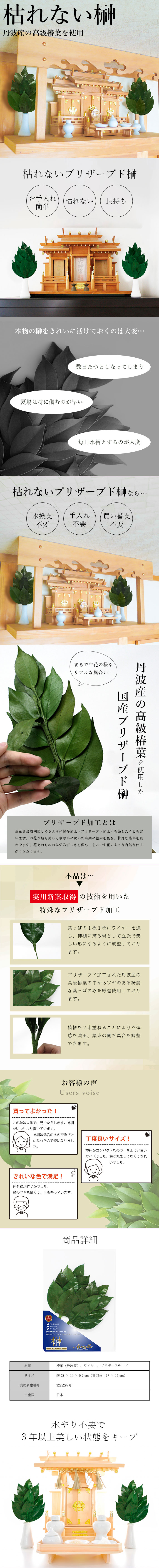 国産 枯れないプリザーブド榊 | ★丹波産の高級椿葉を使用した国産ブリザーブド榊!