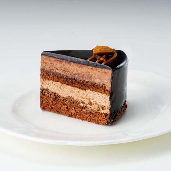 世界の賓客をおもてなしする日本の高質ホテルの代表格「ホテルオークラ」。ホテルオークラで提供されるサービスやお料理は世界のVIPからも評価が高く国内・海外からも多くの客でにぎわう伝統あるホテルである。カカオ分69%のチョコレートを使用したショコラムース、ヘーゼルナッツショコラシャンティ、キャラメルソースを重ね、食感のアクセントにアーモンド、香りづけにコアントローを使用した贅沢なショコラケーキです。