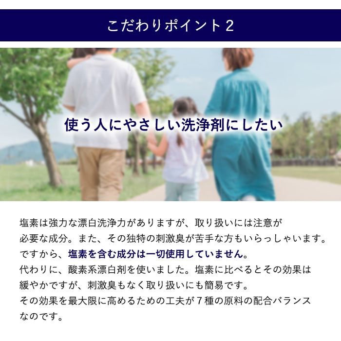 *界面活性剤と塩素成分を一切使用していませんから、人にも環境にもやさしい洗浄剤です。
