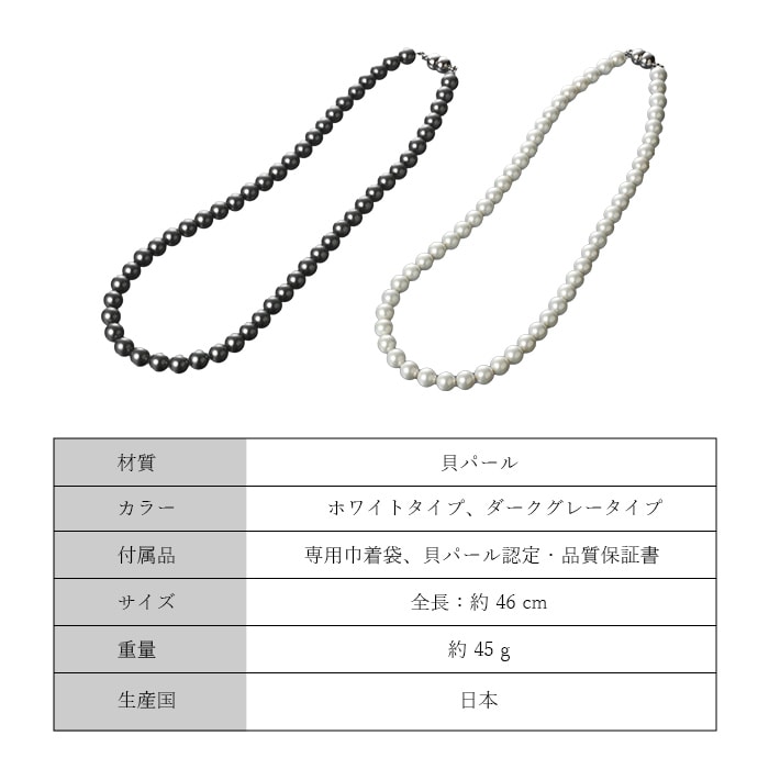 【ホワイトタイプ】クオリティ貝パールネックレス | ★準備しておけば安心です!色々なシーンで活躍してくれる貝パールのネックレス。