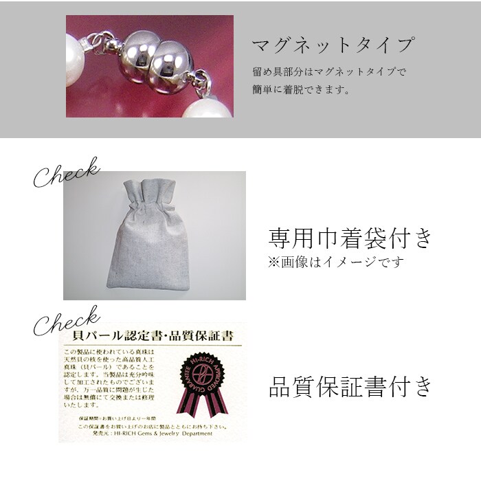 - ダークグレータイプ×1、専用巾着袋、貝パール認定・品質保証書